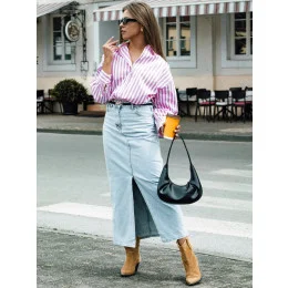 Sukně VIRTON kombinuje klasický styl s moderním nádechem. Džínová maxi sukně s nápadným rozparkem, zapínáním na zip a knoflík je skutečným must-have pro každou ženu. Je univerzální a výrazná, ideální pro každodenní styling, nabízí pohodlí a eleganci v jednom.