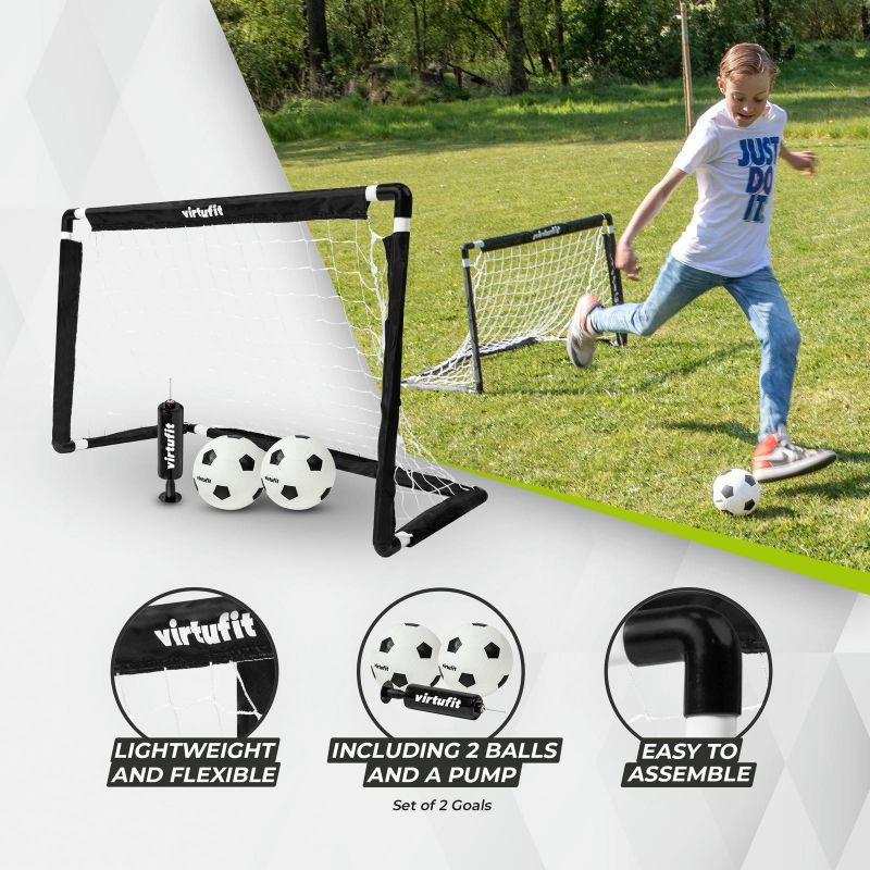 Sada fotbalových branek VirtuFit Kids se dvěma míči a pumpičkou je kompletní sada ideální pro děti. Tyto dvě branky se dodávají se dvěma míči, takže můžete hned začít hrát.....