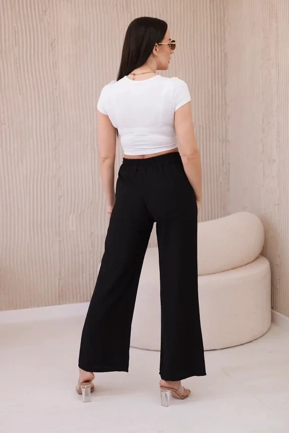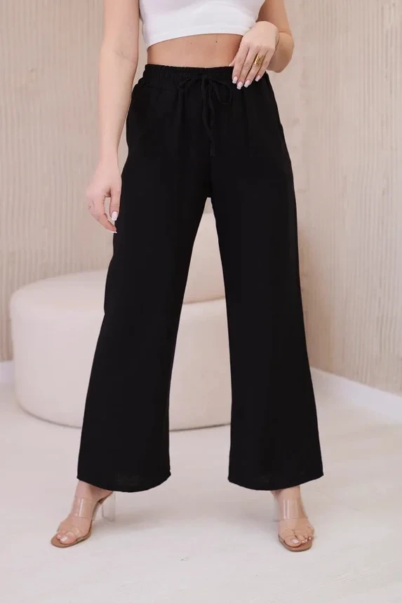Široké viskózové kalhoty jsou jedinečným kouskem oblečení, který kombinuje pohodlí a eleganci. Tyto kalhoty vyrobené z lehkého a vzdušného viskózového materiálu zaručují nejen svobodu pohybu, ale také vám udrží pocit lehkosti a svěžesti po celý den. Široká nohavice dodává kalhotám charakteristický, volný střih, který je módní i pohodlný. Díky tomuto prvku vypadají kalhoty mimořádně stylově a působivě a dodává originalitu každému stylu. Univerzální design širokých kalhot je předurčuje pro různé příležitosti a styly. Můžete je nosit jak ke každodennímu ležérnímu outfitu, tak k elegantnějším soupravám na pracovní schůzky nebo večerní výlety. Široké viskózové kalhoty jsou perfektní volbou pro ženy, které oceňují pohodlí a styl. Díky univerzálnímu designu a kvalitnímu zpracování jsou tyto kalhoty nenahraditelným kouskem šatníku, který skvěle doplní každou kolekci oblečení. Velikost je univerzální a bude vhodná pro ženy, které nosí velikost S, M nebo L.