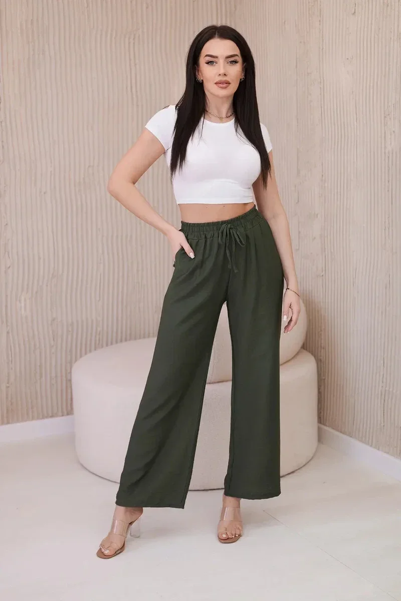 Široké viskózové kalhoty jsou jedinečným kouskem oblečení, který kombinuje pohodlí a eleganci. Tyto kalhoty vyrobené z lehkého a vzdušného viskózového materiálu zaručují nejen svobodu pohybu, ale také vám udrží pocit lehkosti a svěžesti po celý den. Široká nohavice dodává kalhotám charakteristický, volný střih, který je módní i pohodlný. Díky tomuto prvku vypadají kalhoty mimořádně stylově a působivě a dodává originalitu každému stylu. Univerzální design širokých kalhot je předurčuje pro různé příležitosti a styly. Můžete je nosit jak ke každodennímu ležérnímu outfitu, tak k elegantnějším soupravám na pracovní schůzky nebo večerní výlety. Široké viskózové kalhoty jsou perfektní volbou pro ženy, které oceňují pohodlí a styl. Díky univerzálnímu designu a kvalitnímu zpracování jsou tyto kalhoty nenahraditelným kouskem šatníku, který skvěle doplní každou kolekci oblečení. Velikost je univerzální a bude vhodná pro ženy, které nosí velikost S, M nebo L.