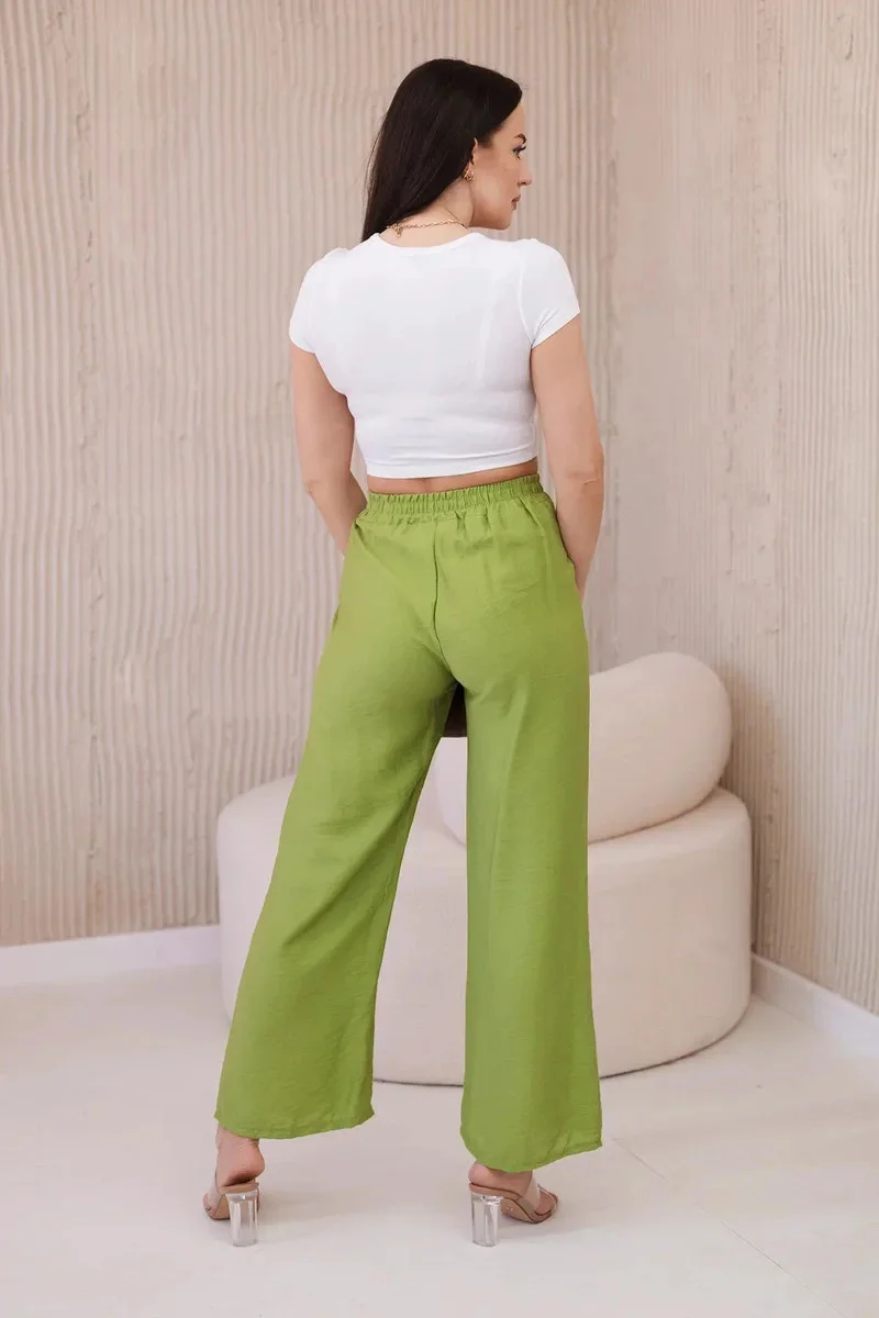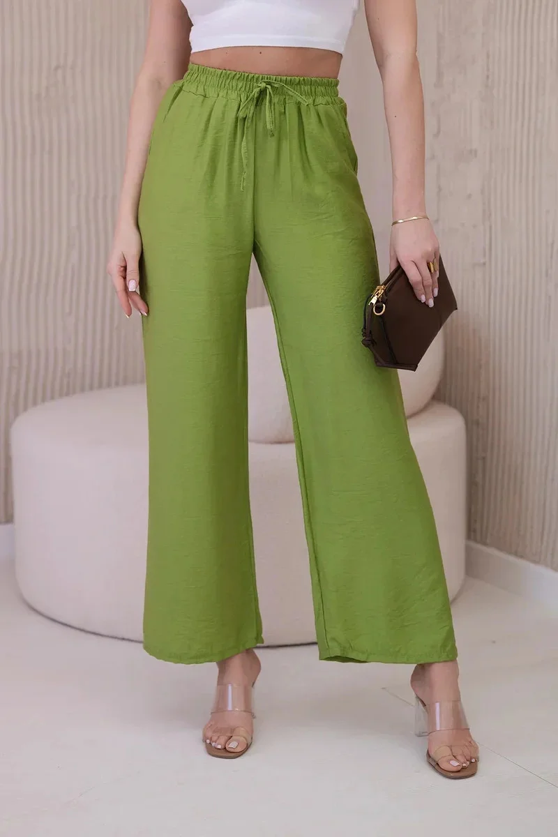 Široké viskózové kalhoty jsou jedinečným kouskem oblečení, který kombinuje pohodlí a eleganci. Tyto kalhoty vyrobené z lehkého a vzdušného viskózového materiálu zaručují nejen svobodu pohybu, ale také vám udrží pocit lehkosti a svěžesti po celý den. Široká nohavice dodává kalhotám charakteristický, volný střih, který je módní i pohodlný. Díky tomuto prvku vypadají kalhoty mimořádně stylově a působivě a dodává originalitu každému stylu. Univerzální design širokých kalhot je předurčuje pro různé příležitosti a styly. Můžete je nosit jak ke každodennímu ležérnímu outfitu, tak k elegantnějším soupravám na pracovní schůzky nebo večerní výlety. Široké viskózové kalhoty jsou perfektní volbou pro ženy, které oceňují pohodlí a styl. Díky univerzálnímu designu a kvalitnímu zpracování jsou tyto kalhoty nenahraditelným kouskem šatníku, který skvěle doplní každou kolekci oblečení. Velikost je univerzální a bude vhodná pro ženy, které nosí velikost S, M nebo L.