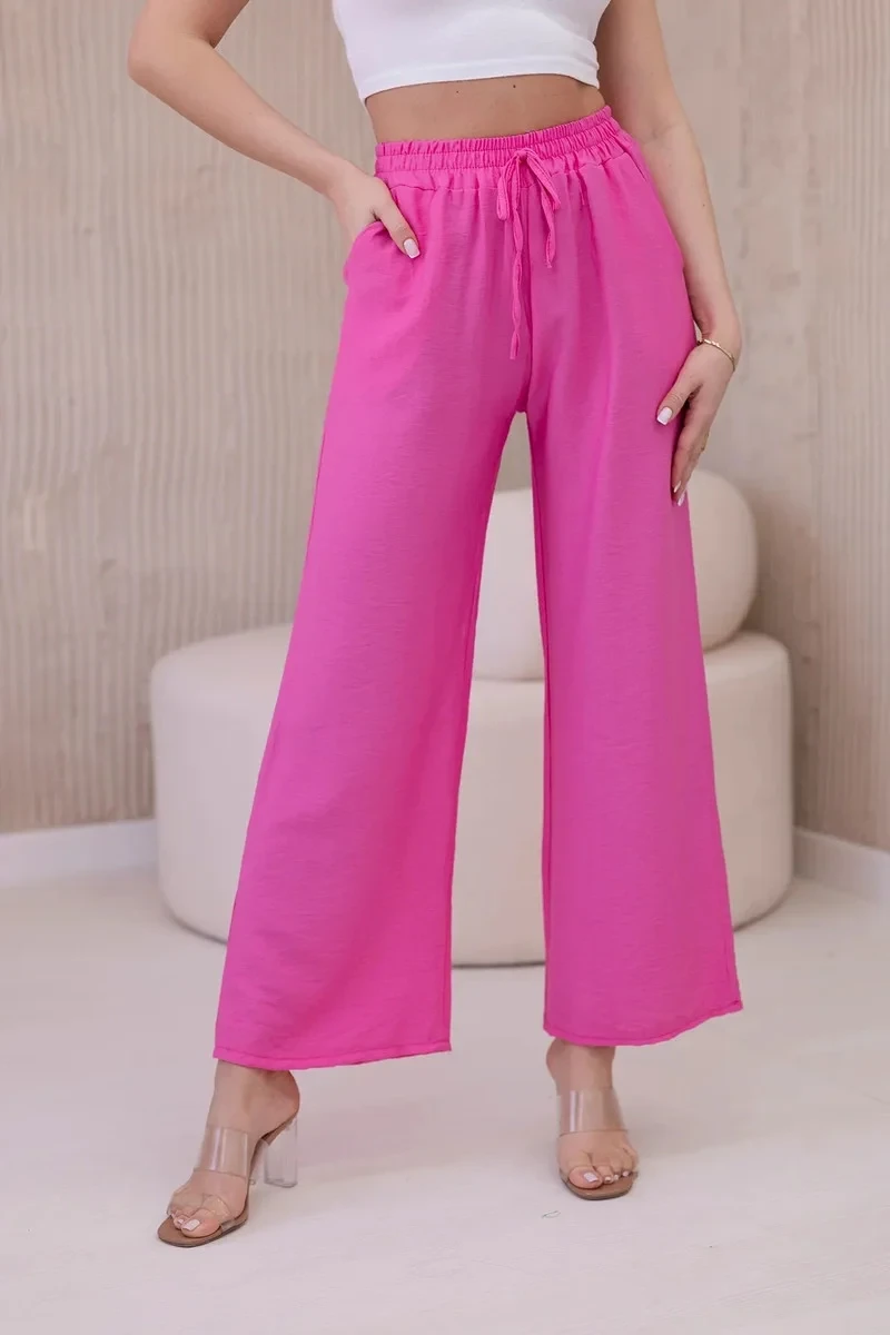 Široké viskózové kalhoty jsou jedinečným kouskem oblečení, který kombinuje pohodlí a eleganci. Tyto kalhoty vyrobené z lehkého a vzdušného viskózového materiálu zaručují nejen svobodu pohybu, ale také vám udrží pocit lehkosti a svěžesti po celý den. Široká nohavice dodává kalhotám charakteristický, volný střih, který je módní i pohodlný. Díky tomuto prvku vypadají kalhoty mimořádně stylově a působivě a dodává originalitu každému stylu. Univerzální design širokých kalhot je předurčuje pro různé příležitosti a styly. Můžete je nosit jak ke každodennímu ležérnímu outfitu, tak k elegantnějším soupravám na pracovní schůzky nebo večerní výlety. Široké viskózové kalhoty jsou perfektní volbou pro ženy, které oceňují pohodlí a styl. Díky univerzálnímu designu a kvalitnímu zpracování jsou tyto kalhoty nenahraditelným kouskem šatníku, který skvěle doplní každou kolekci oblečení. Velikost je univerzální a bude vhodná pro ženy, které nosí velikost S, M nebo L.