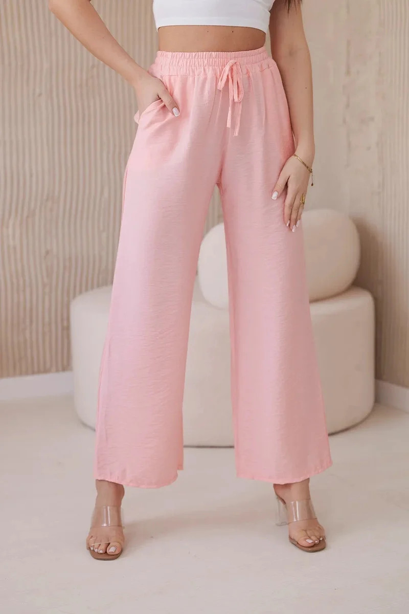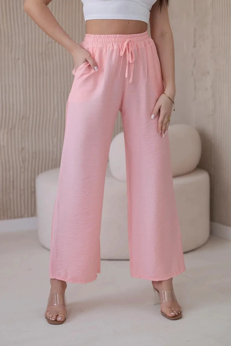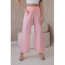 Viskózové kalhoty se širokými nohavicemi světle pudrově růžová