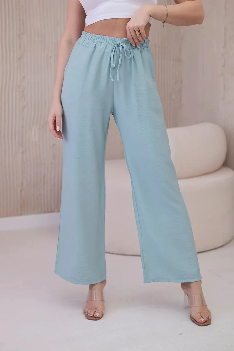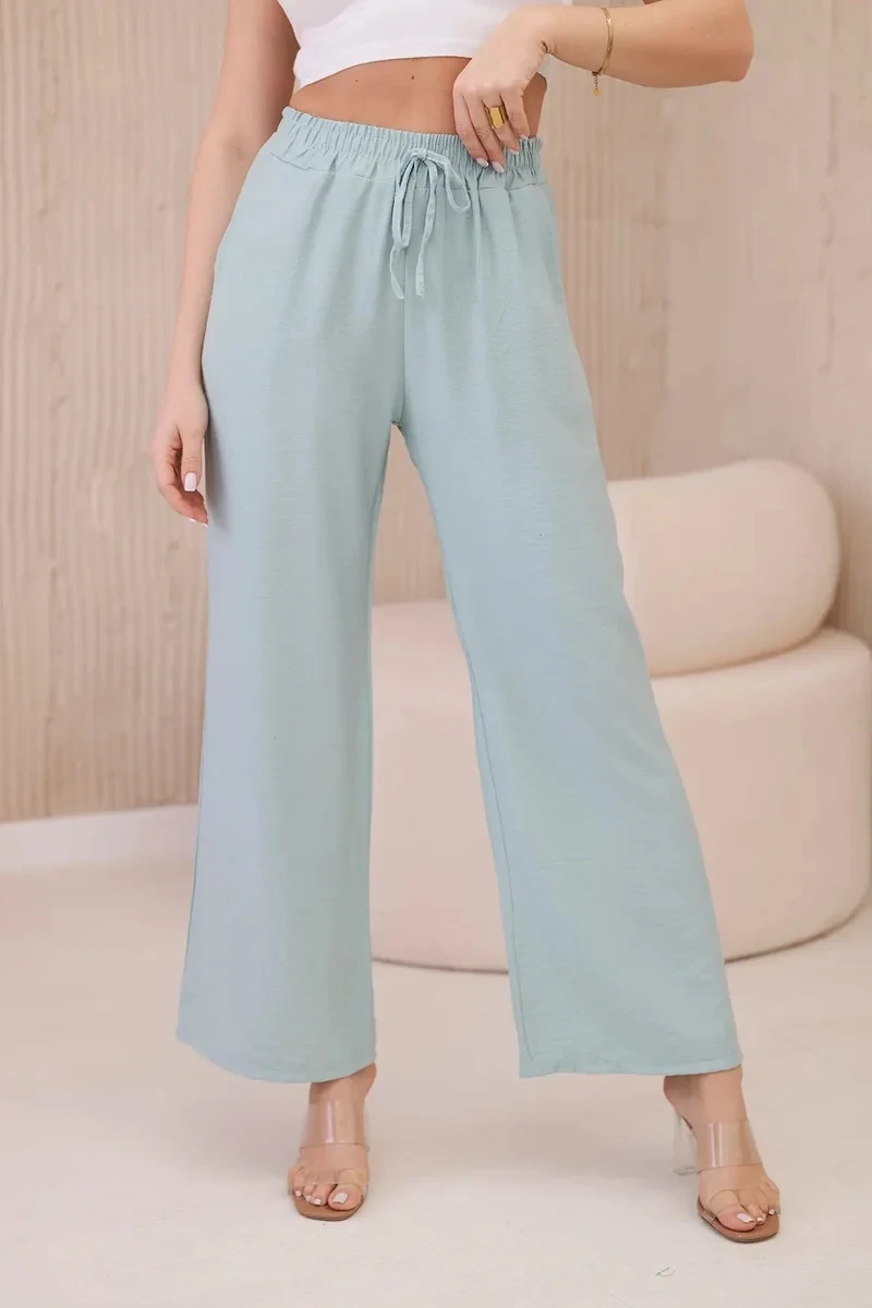 Viskózové kalhoty se širokými nohavicemi tmavá máta