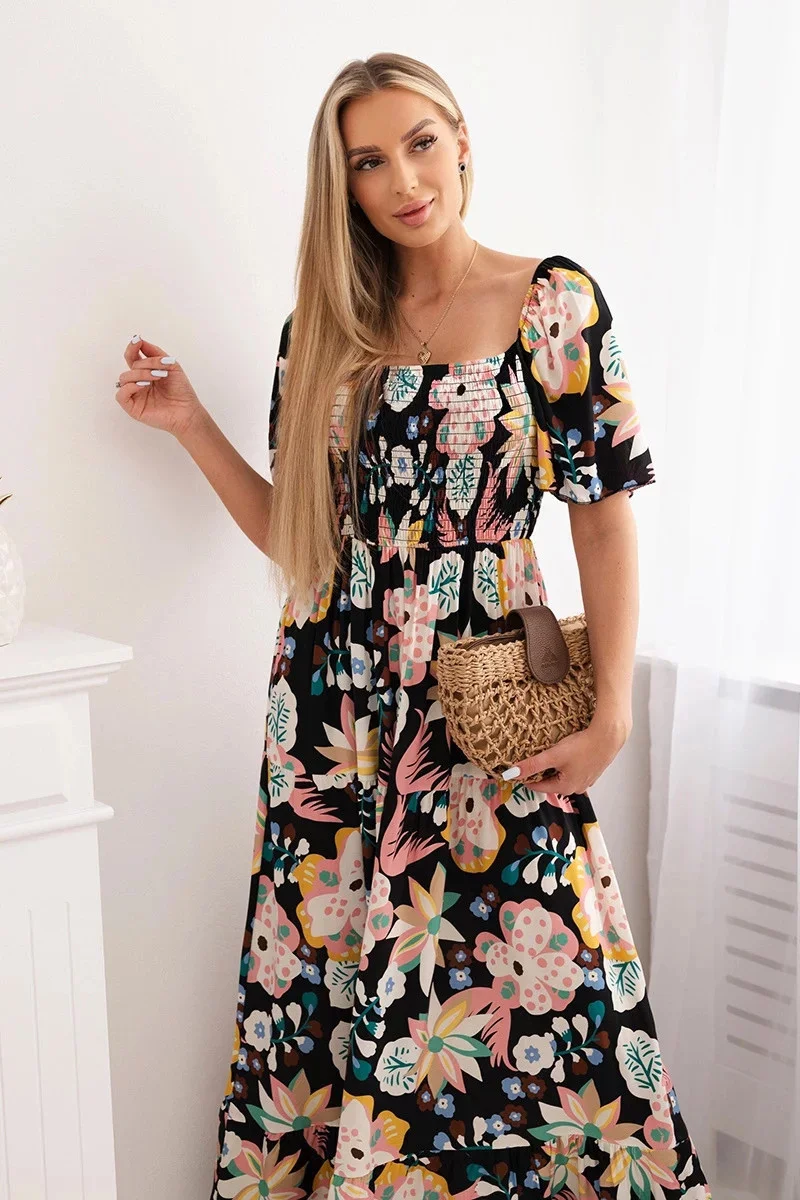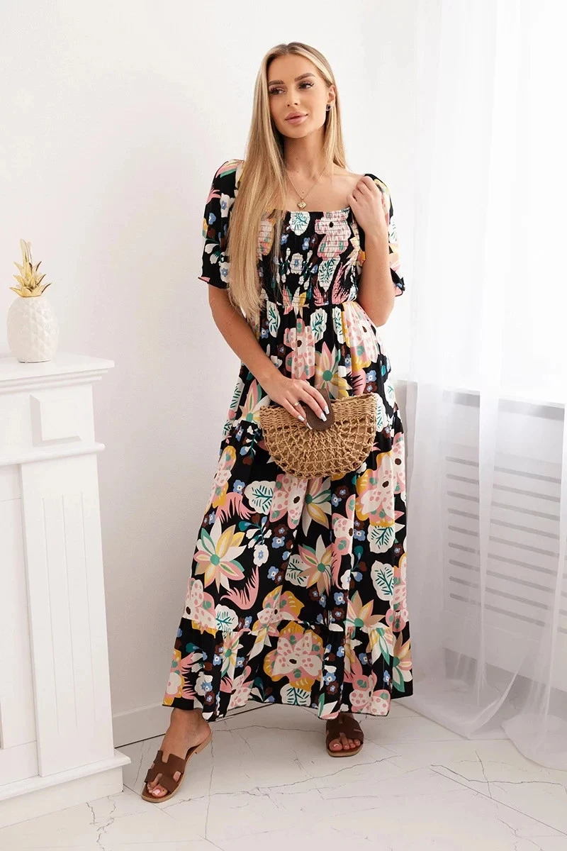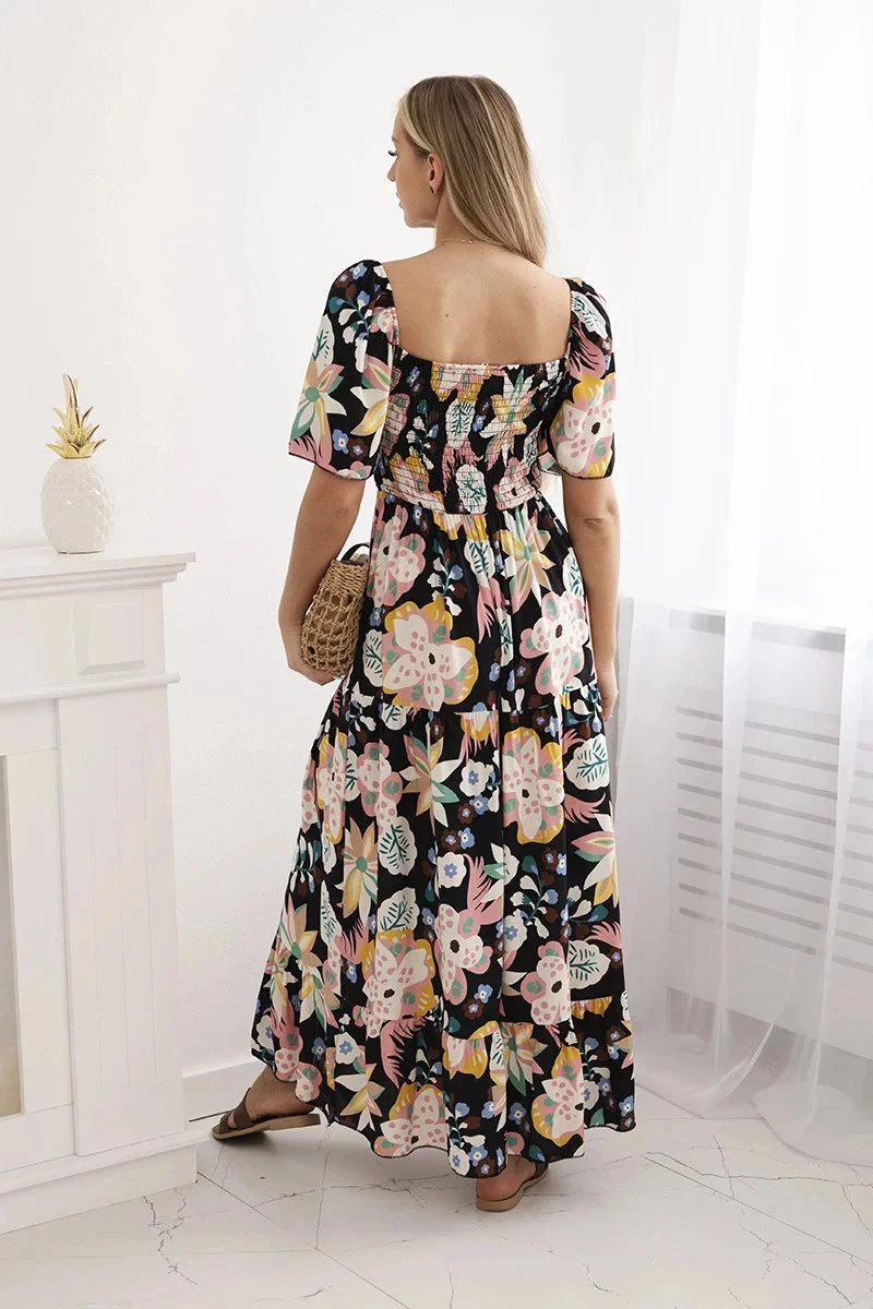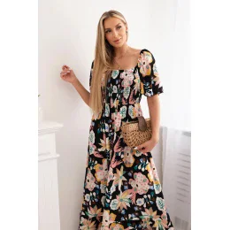 Viskózové šaty s volánkovým výstřihem model 20243124 černé - Kesi