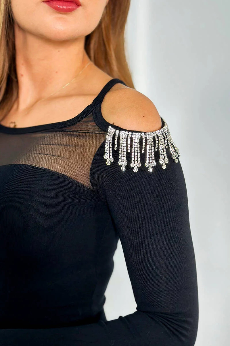 Viskózové šaty se síťovinou nahoře černý