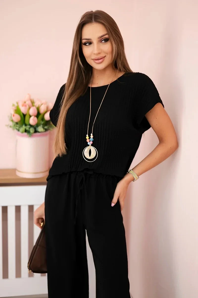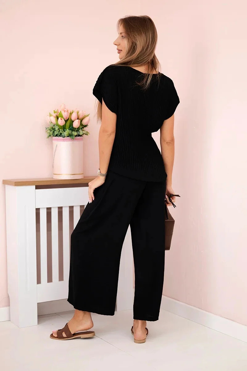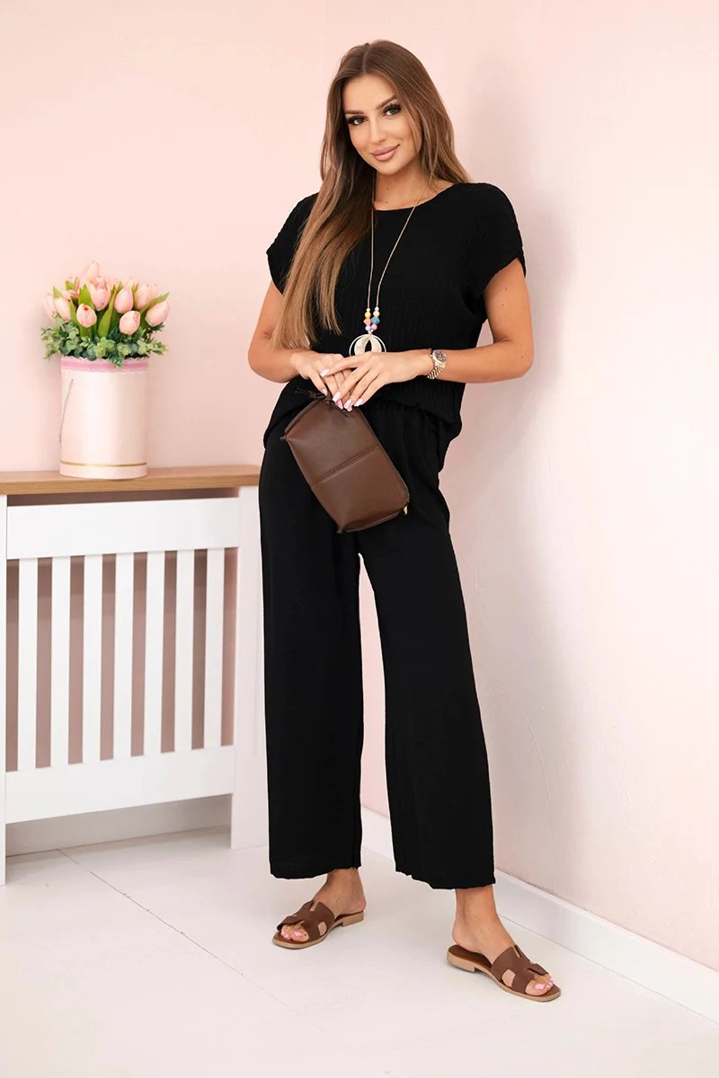 Viskózový komplet plisovaná halenka + kalhoty černý