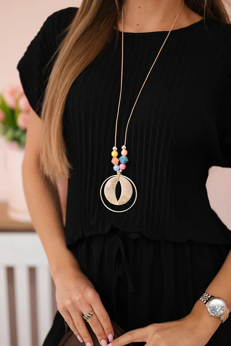 Objevte jedinečný komplet, který spojuje pohodlí a eleganci a vytváří dokonalý outfit pro každou příležitost. Vyrobený z lehké a prodyšné viskózy, poskytuje maximální komfort při nošení a zároveň vypadá velmi stylově. Plisovaná halenka s volným střihem jemně podtrhuje siluetu a dodává jí lehkost a moderní vzhled. Široké kalhoty dokonale ladí s halenkou a zajišťují volnost pohybu i elegantní vzhled. Celý komplet doplňuje ozdobný náhrdelník, který přidává jedinečný stylový prvek a eliminuje potřebu dalších doplňků. Tento set je ideální jak pro formální setkání, tak i pro každodenní nošení, kdy chcete vypadat elegantně, ale zároveň se cítit pohodlně. Vyberte si komplet z viskózy a užívejte si lehkost i nadčasový styl. Velikost je univerzální a vhodná pro ženy nosící velikosti S, M nebo L.