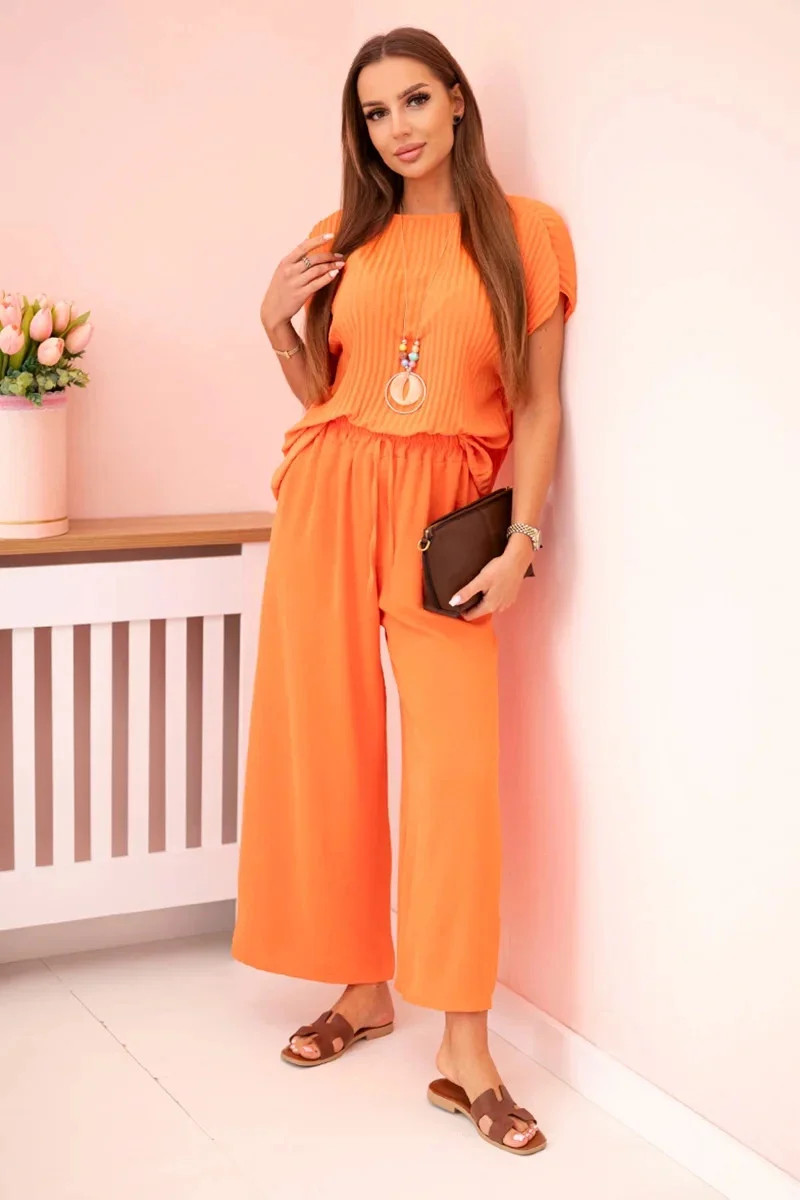 Viskózový komplet plisovaná halenka + kalhoty model 21961205 - K-Fashion