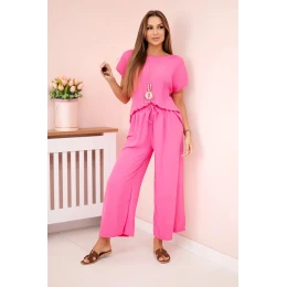 Viskózový komplet plisovaná halenka + kalhoty růžový