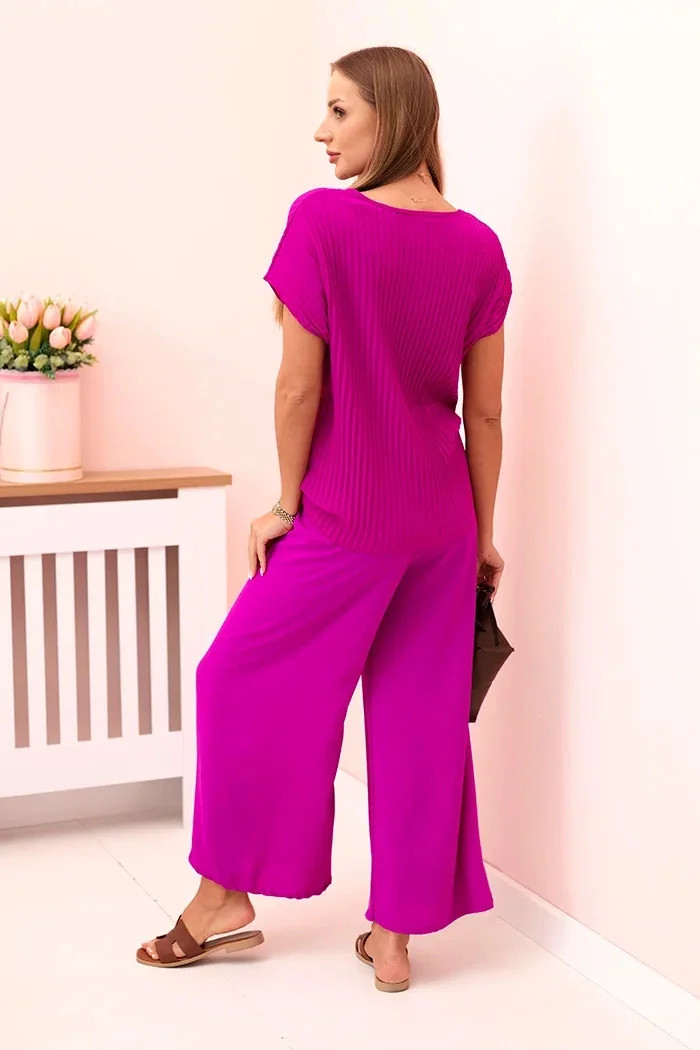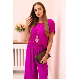 Viskózový komplet plisovaná halenka + kalhoty tmavě fialová