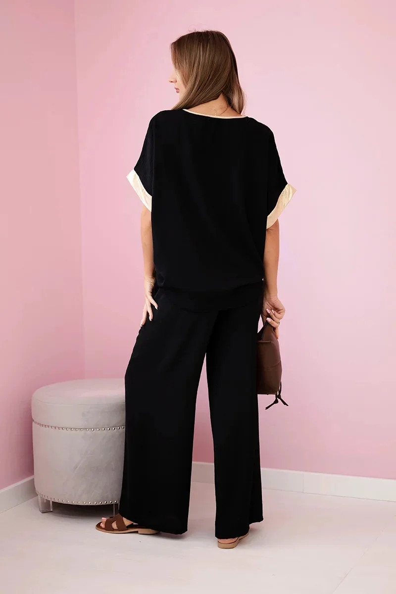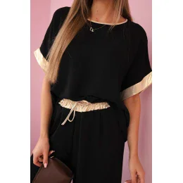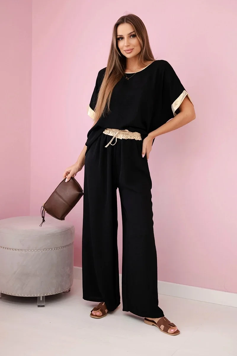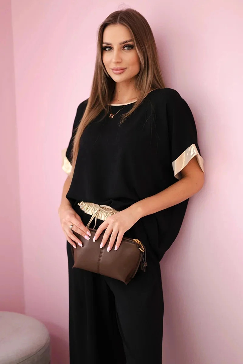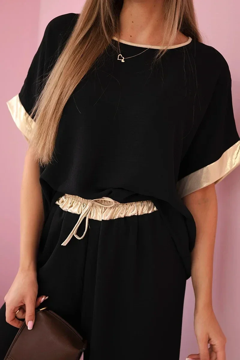 Viskózový komplet se zlatým lemováním černý