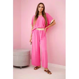 Viskózový komplet se zlatým lemováním růžový