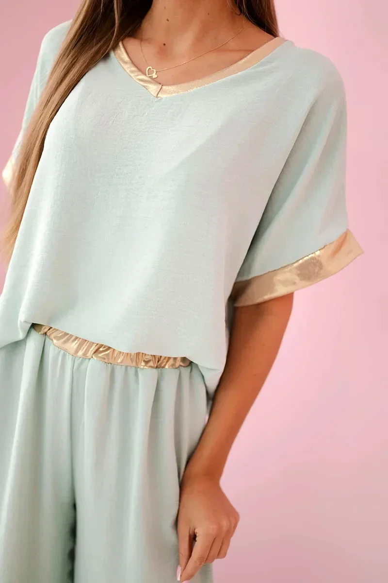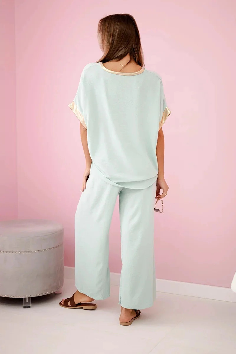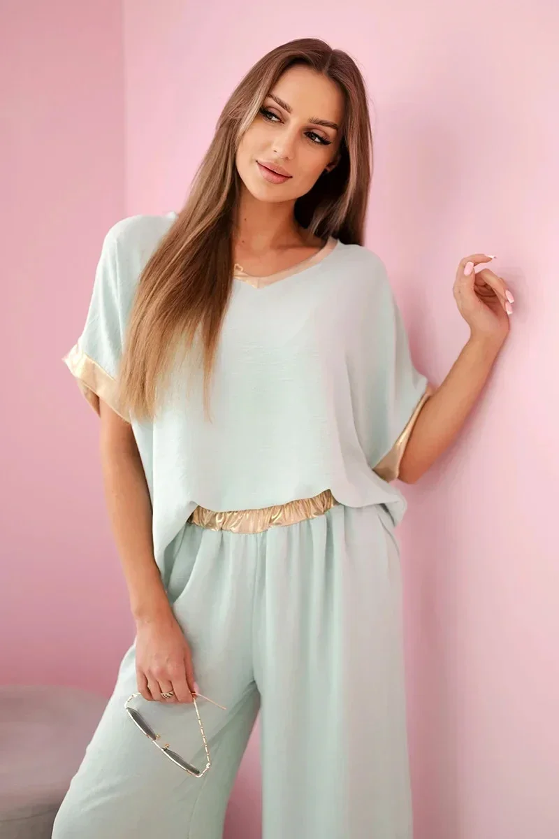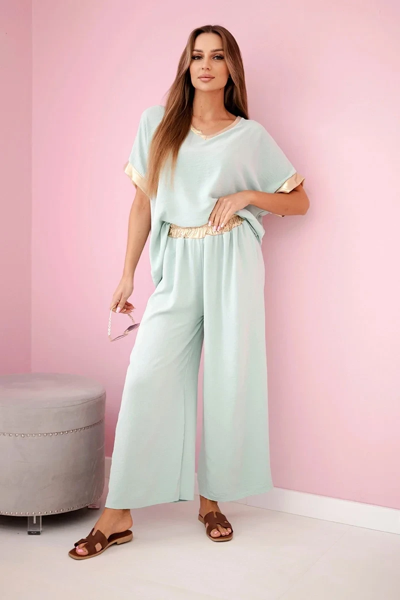 Viskózový komplet se zlatým lemováním tmavá máta