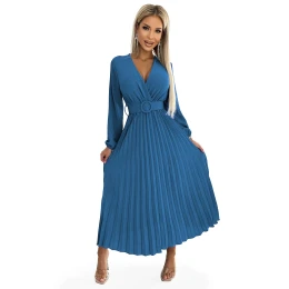 Přidání recenze k Dámské plisované midi šaty v džínové barvě s výstřihem, dlouhými rukávy a širokým opaskem model 19431778 - numoco basic