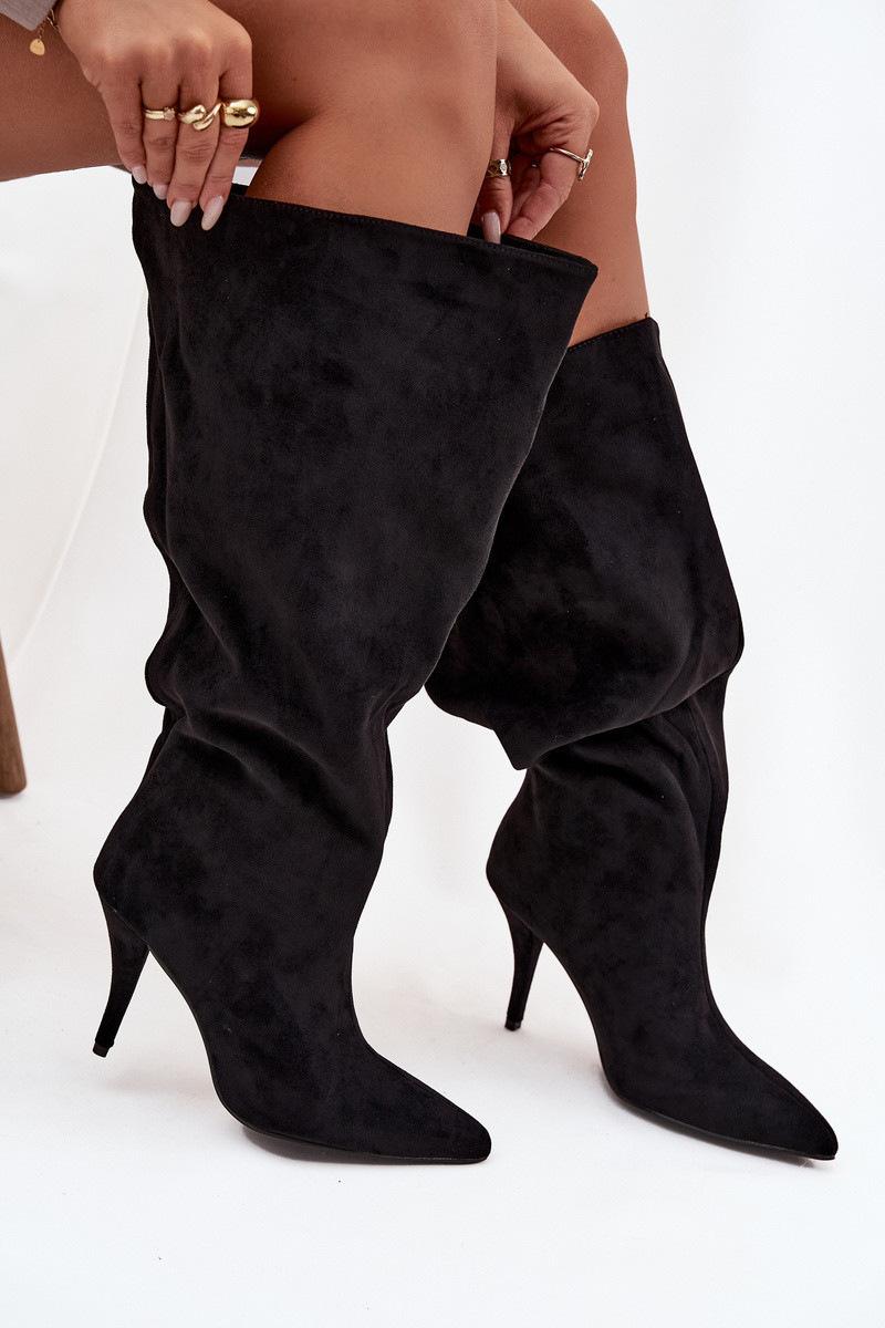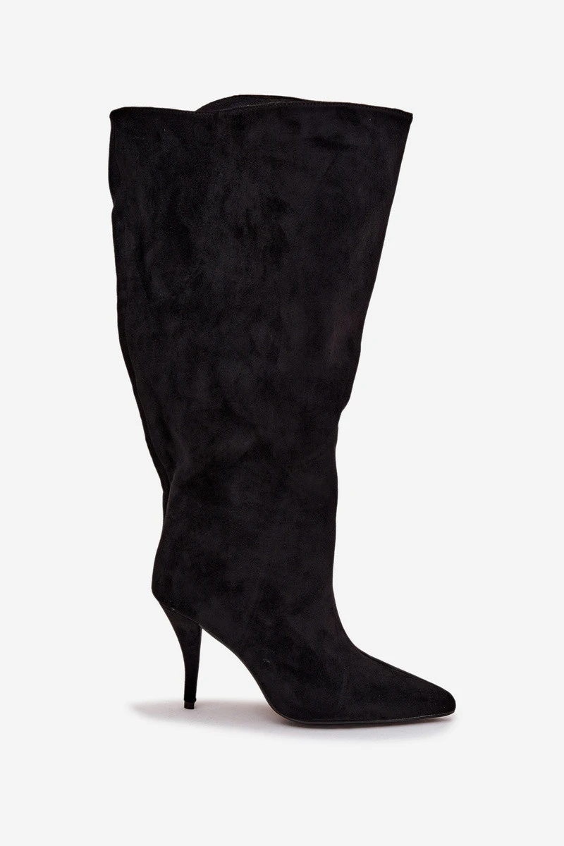 Vklouzávací dámské kozačky na podpatku z eko semiše černé Noretta