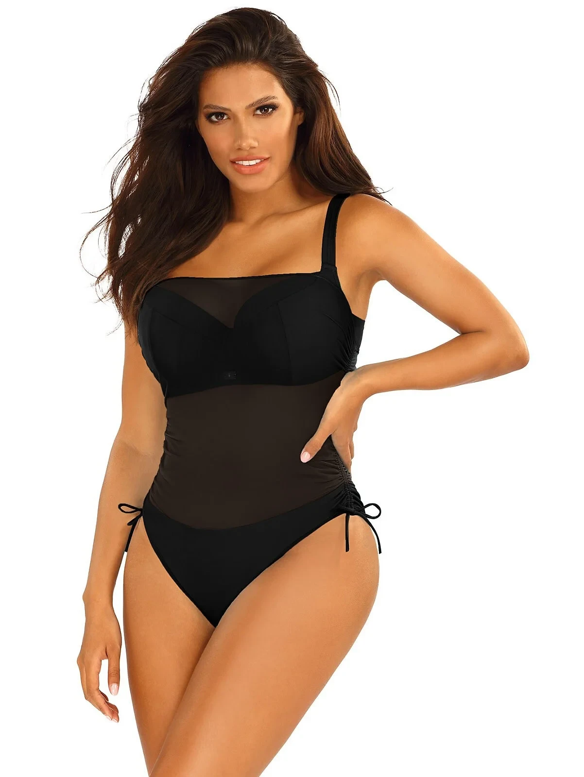 boky s nastavitelnými ramínky- v horní linii je všitý průhledný tyl, který lze nařasit až k linii pasu nebo vytáhnout až k linii prsou