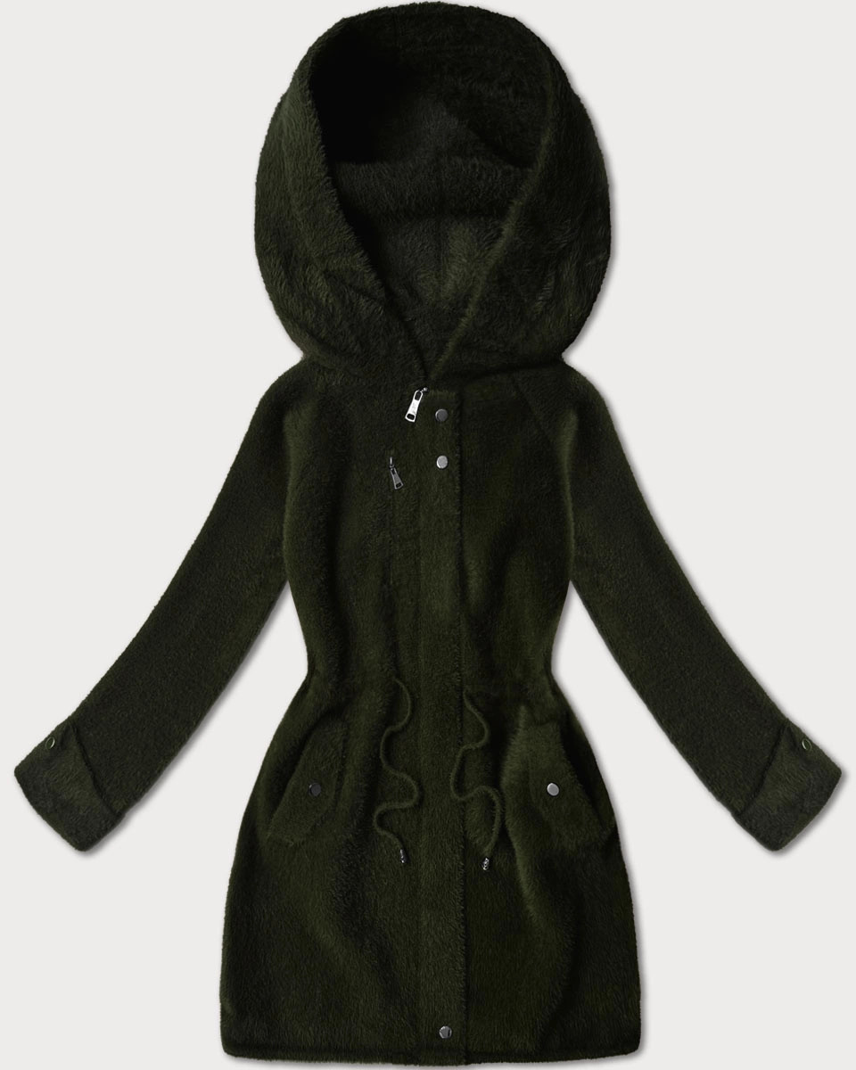 Vlněná bunda typu alpaka v army barvě s kapucí model 21482437 - MHM