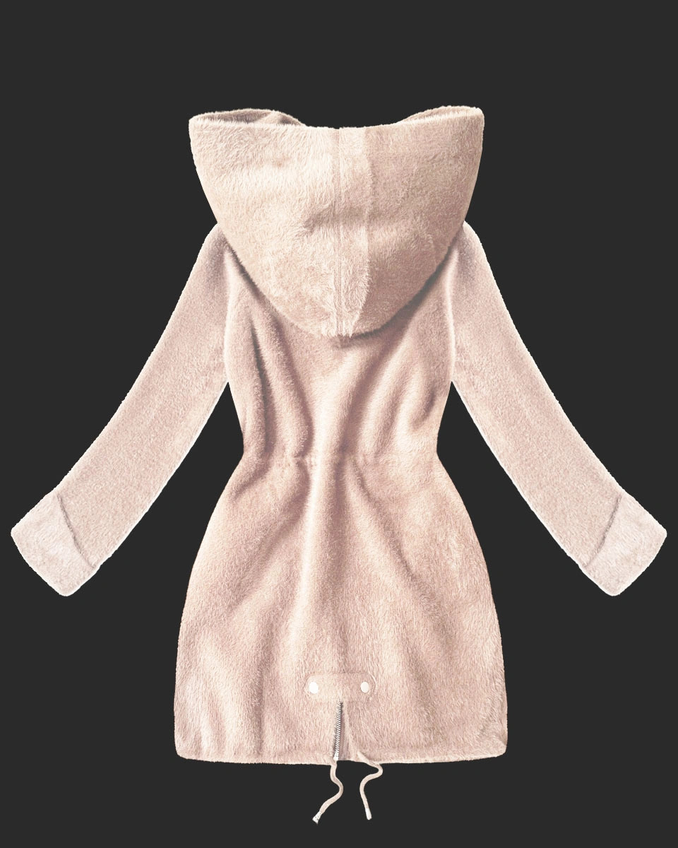 Vlněná bunda z alpaky s kapucí světle lososová (W214#)