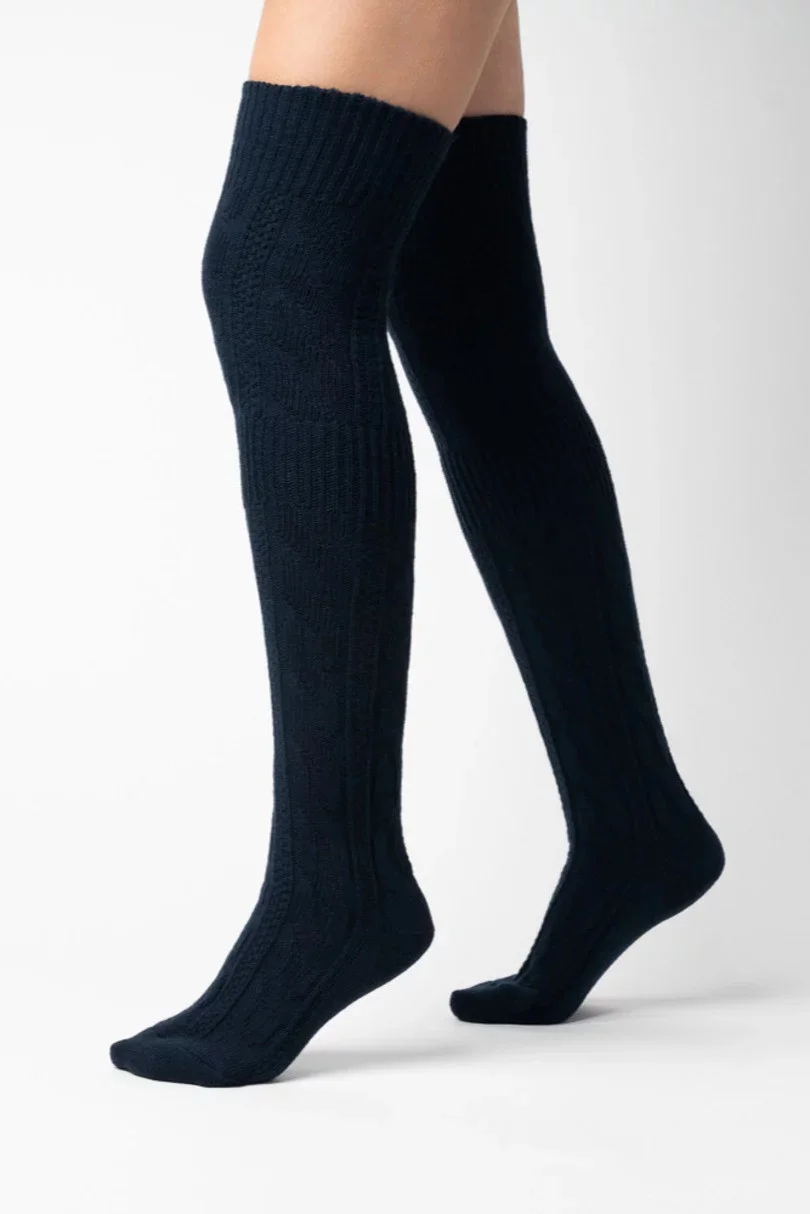 Vlněné dámské nadkolenky 089 tm. modrá - Steven