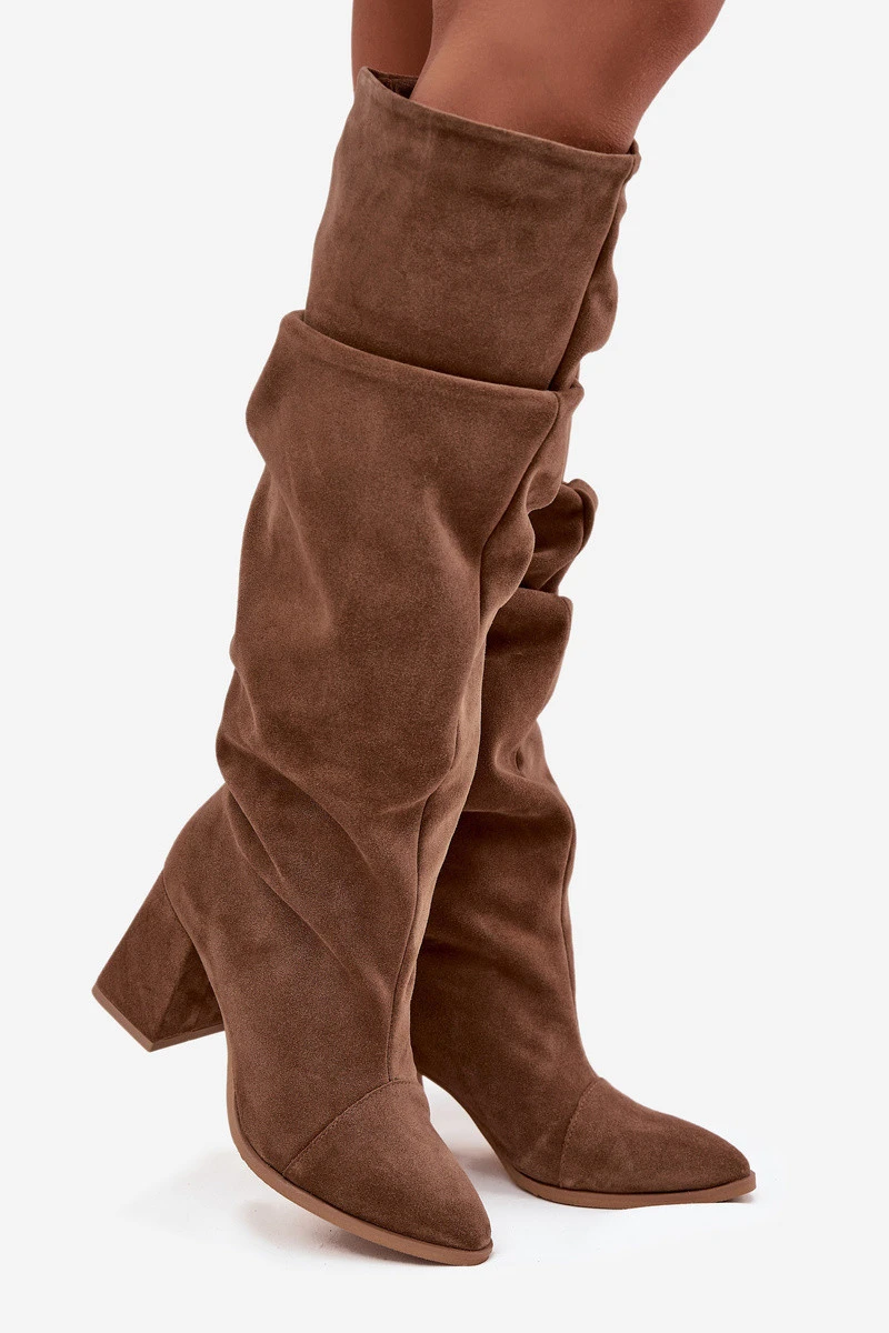 Vlnité kozačky z přírodního semiše na podpatku zateplené Zazoo 4228 světle hnědé