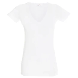 Dámské tričko s výstřihem do V. Ušité z hladkého materiálu single jersey, má elastický lem a dvojté švy. Gramáž: 160g/m2