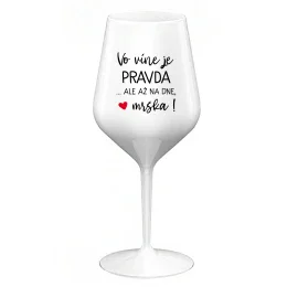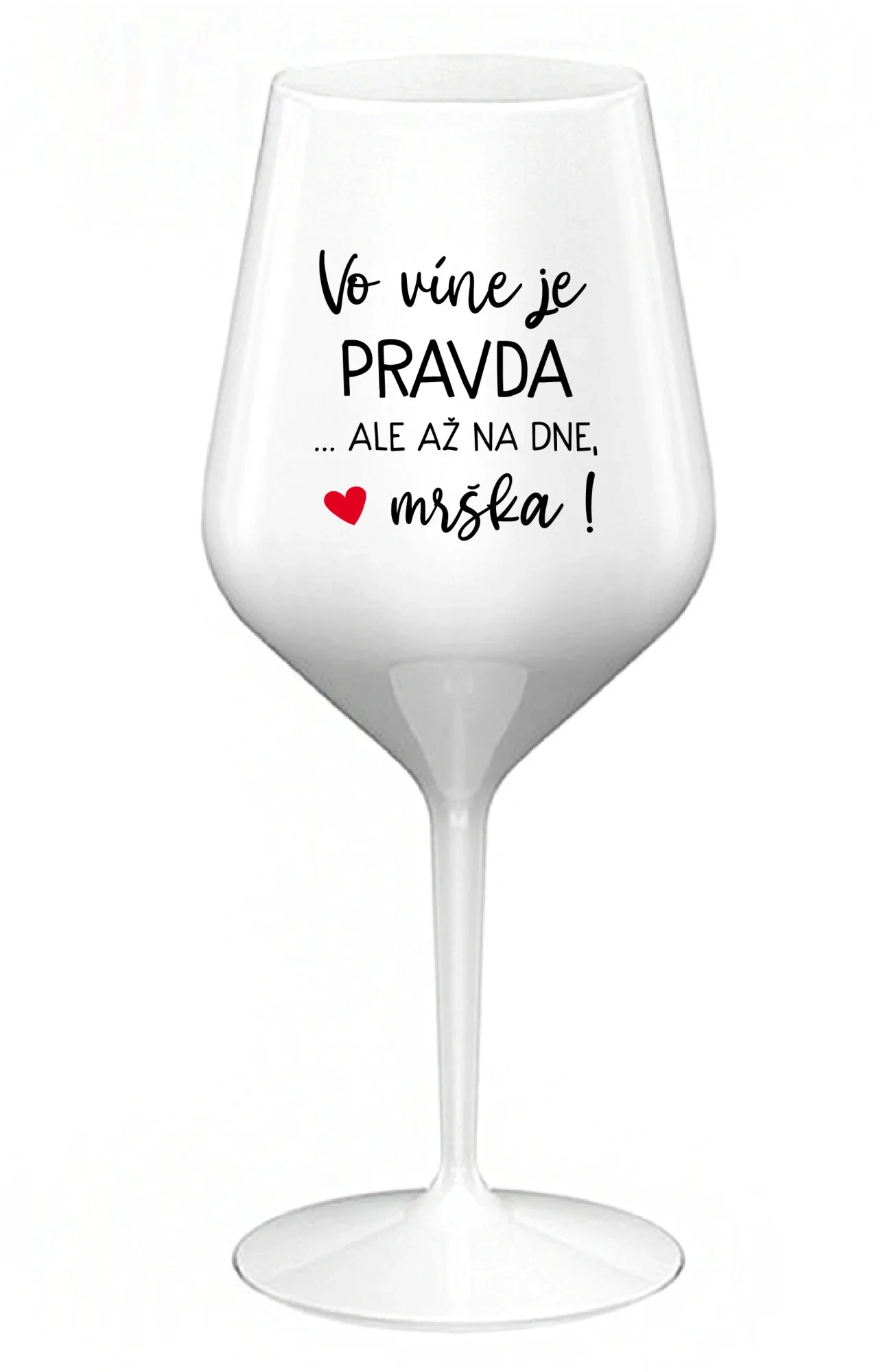 VO VÍNE JE PRAVDA...ALE AŽ NA DNE, MRŠKA! - biely nerozbitný pohár na víno 470 ml
