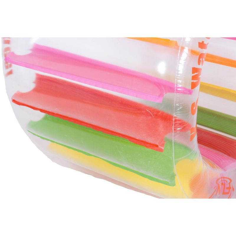 Materiál, ze kterého je kolečko vyrobeno, je 0,25 mm silný vinyl, který nezmění barvu ani při vystavení slunečnímu záření, ani chemikáliím používaným k čištění, a umožní vašemu dítěti bezpečně se cákat v osvěžující vodě po několik sezón.