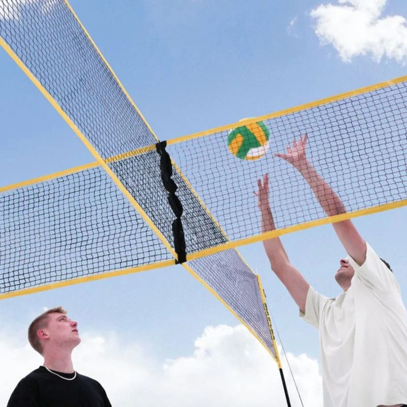 Volejbalová síť Sunflex X-Net 73095 Volejbalová síť Sunflex vychází ze sportu z USA, kde se volejbal hraje na hřišti o 4 polích. Síť je výškově nastavitelná a lze ji přizpůsobit pro různé věkové skupiny, stejně jako pro fotbal nebo badminton. Stabilitu zajišťují šňůry zkřížené na zemi a upevnění sloupků pomocí kolíků. Síť lze rozložit na trávu nebo písek a celá je zabalená v tašce. Technické údaje:- rozměr hřiště: 3 x 3 m + napínací lano- rozměr sítě: 3 x 0,5 m- nastavitelná výška: 1 m / 1,5 m / 2 m.