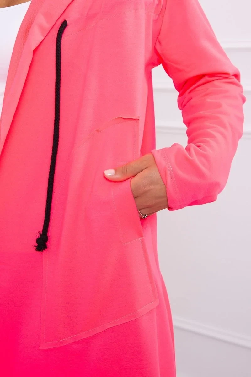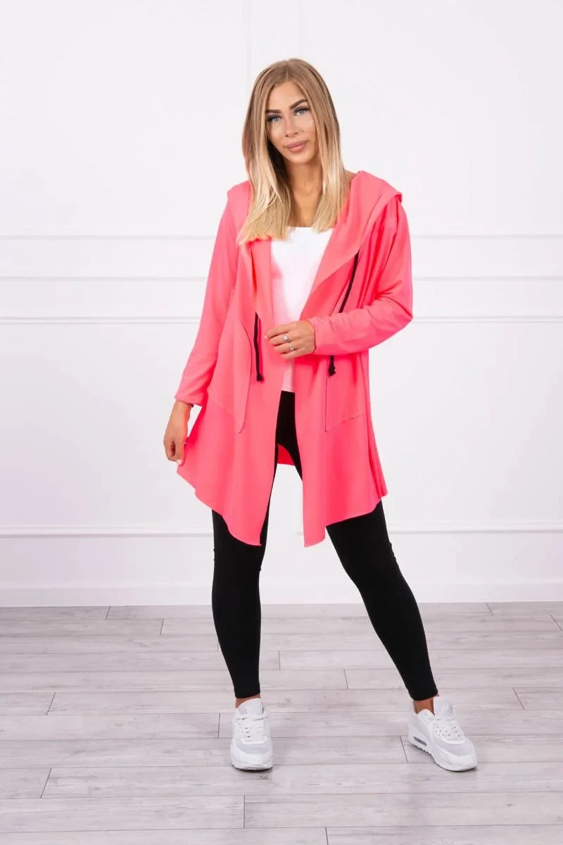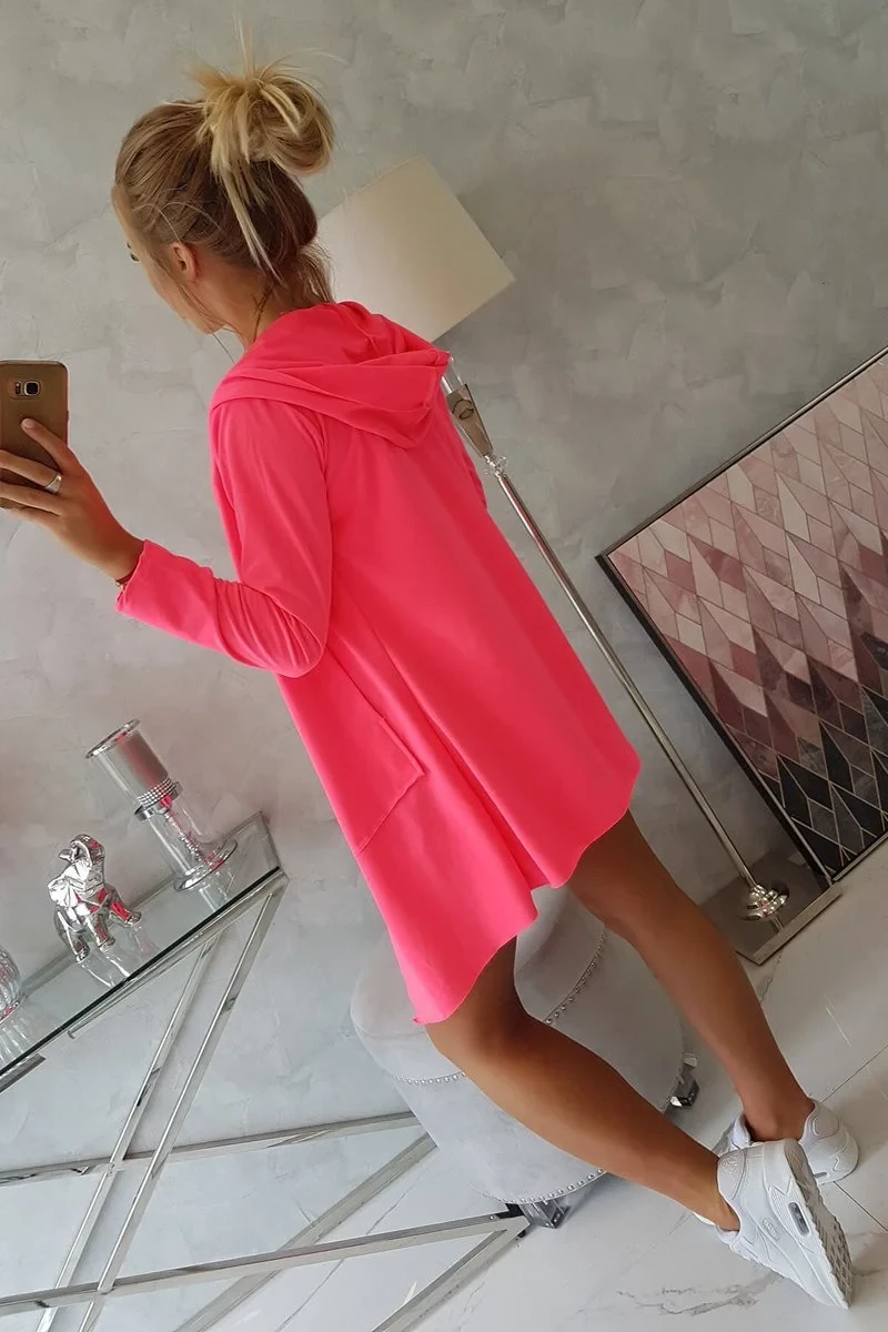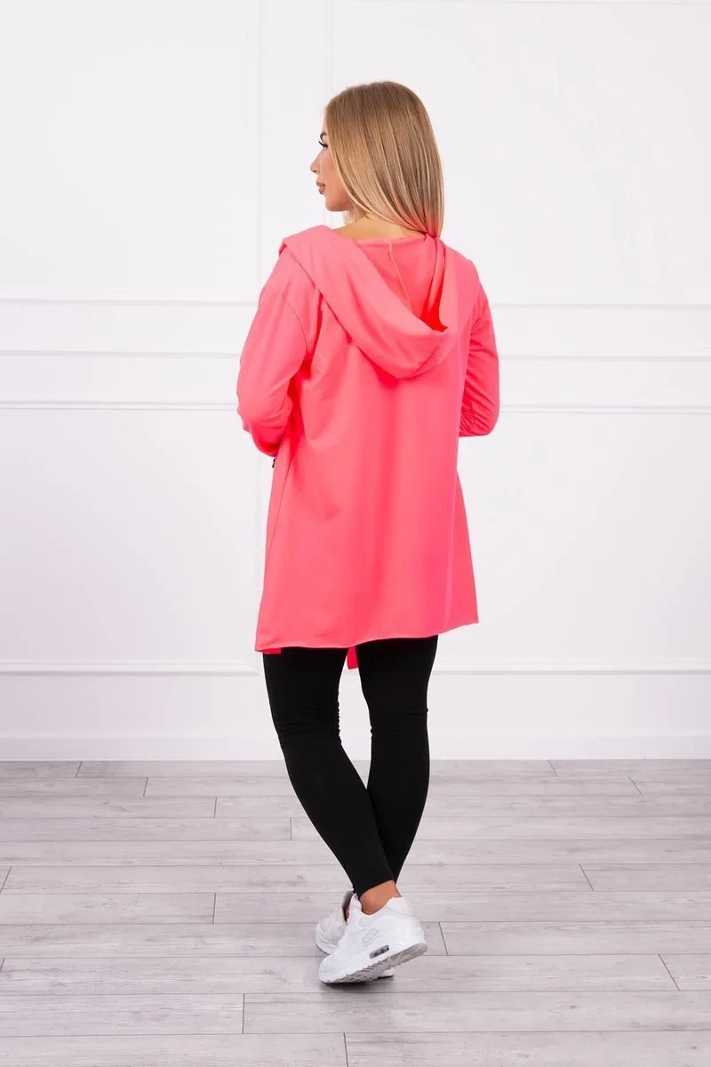 Volná bunda s kapucí růžová neonová