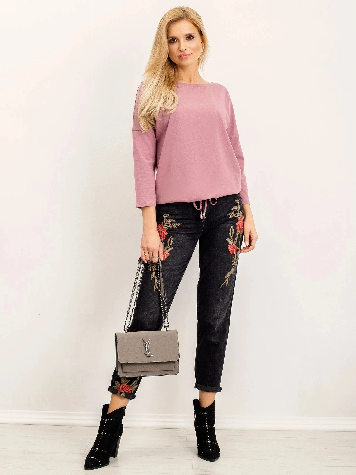 Volná dámská halenka ve špinavě růžové barvě se zavazováním na spodním okraji (4691)