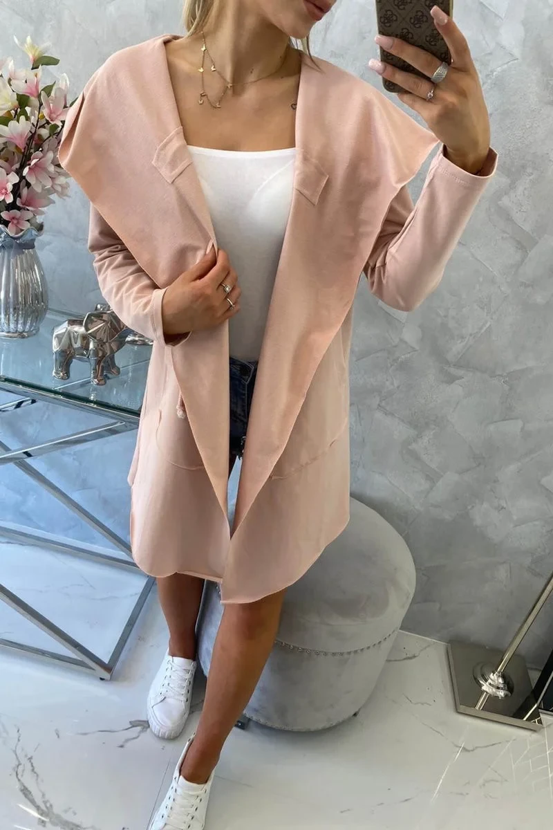 Volná pláštěnka s kapucí tmavě pudrově růžová