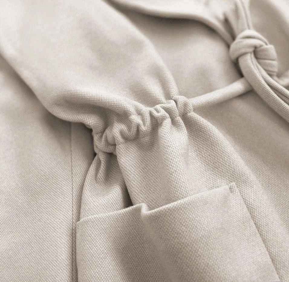 Kabát má jednoduchý střih, podšívku a délku k bokům. Model se zapíná knoflíkem a patentkou. V pase modelu je stahující šňůrka. Kabát má dvě kapsy. Zadní díl modelu je o něco delší než přední díl.
