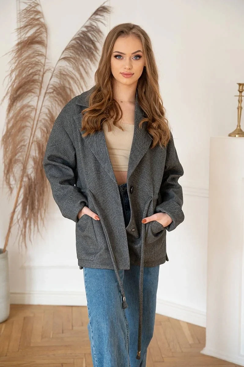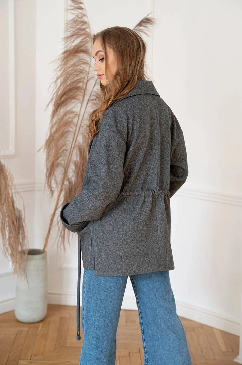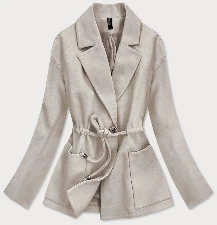 Přidání recenze k Volný béžový krátký dámský kabát (2727)