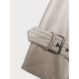 Přidání recenze k Volný dámský kabát z ekologické kůže v teplé béžové barvě model 19035405 - J.STYLE