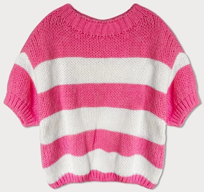 Volný dámský pruhovaný svetr v neonově růžové barvě (761ART)