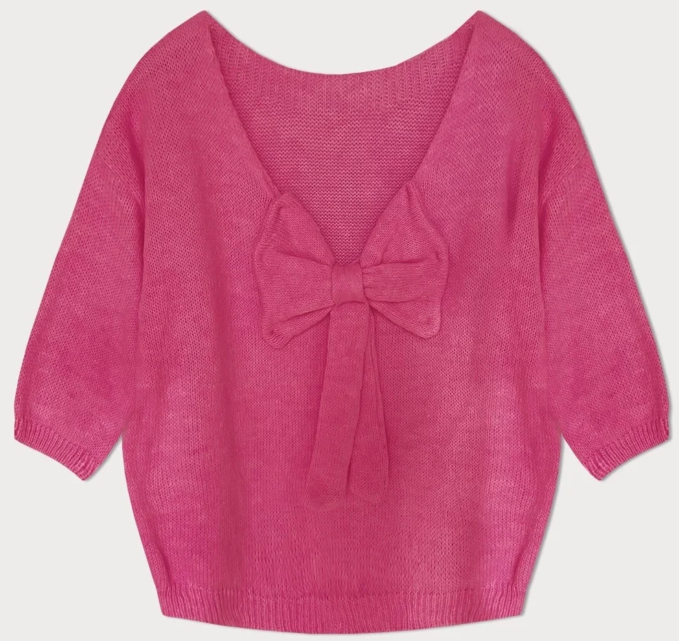 Volný svetr v neonově růžové barvě s mašlí na zádech (759ART)