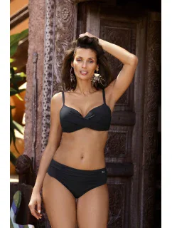 Vrchní díl plavek ideální na horké letní dny. Kvalitní materiál se dobře přizpůsobí, nevytahuje se a je odolný proti působení slunečních paprsků. Měkká podprsenka krásně pozvedá prsa a dává jim kulatý tvar. Dostupná ve dvou barvách - v černé s mašličkou nebo smaragdově zelené se zlatou ozdobou.