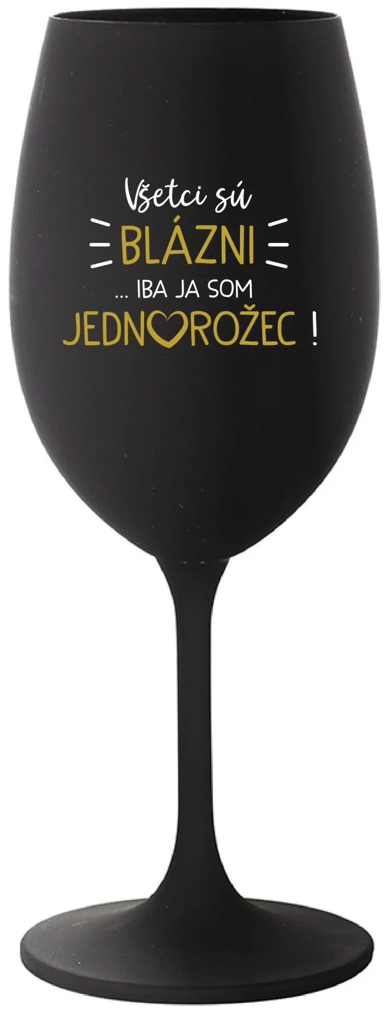 VŠETCI SÚ BLÁZNI...IBA JA SOM JEDNOROŽEC! - čierny pohár na víno 350 ml