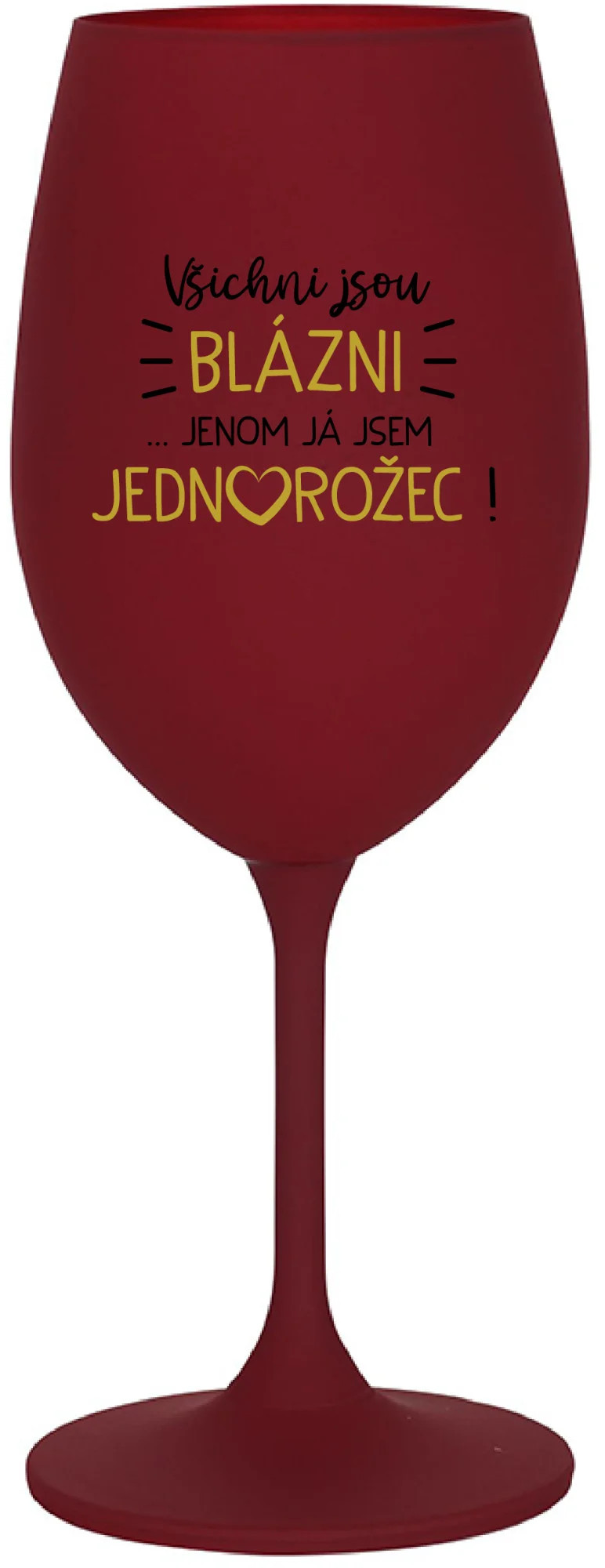 VŠICHNI JSOU BLÁZNI...JENOM JÁ JSEM JEDNOROŽEC! - bordo sklenice na víno 350 ml
