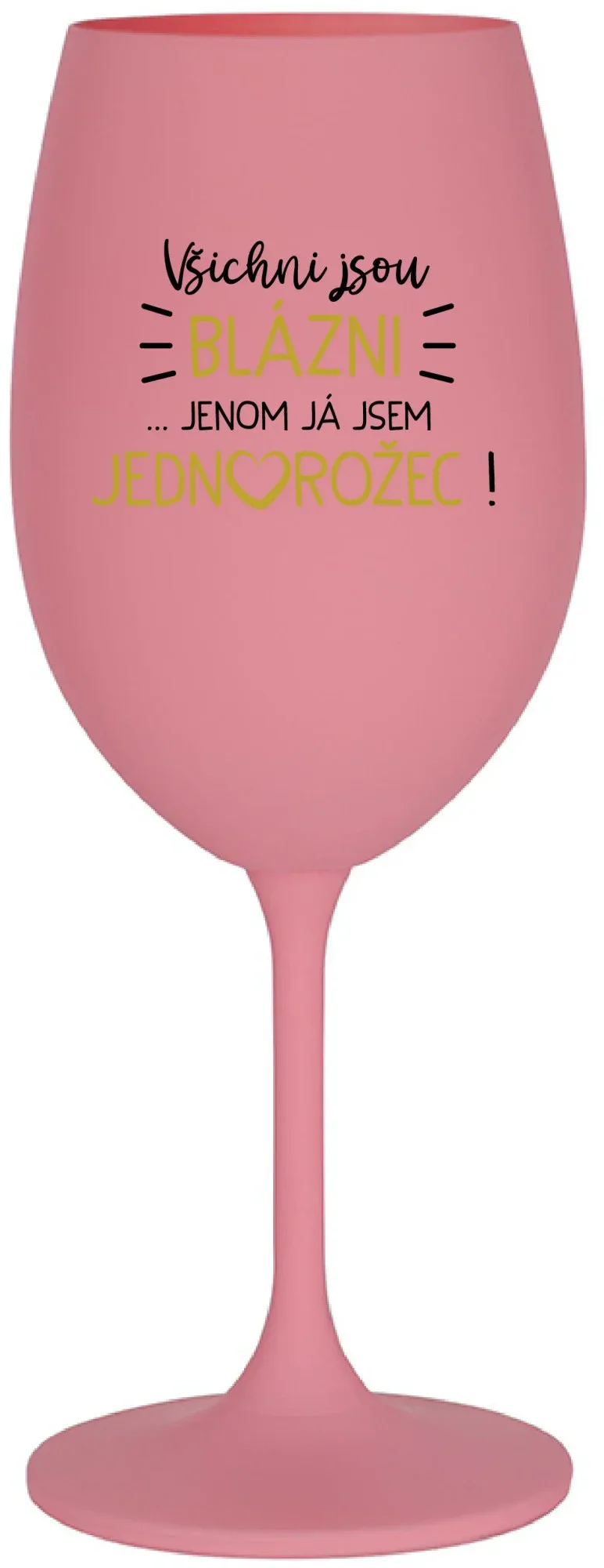 VŠICHNI JSOU BLÁZNI...JENOM JÁ JSEM JEDNOROŽEC! - růžová sklenice na víno 350 ml