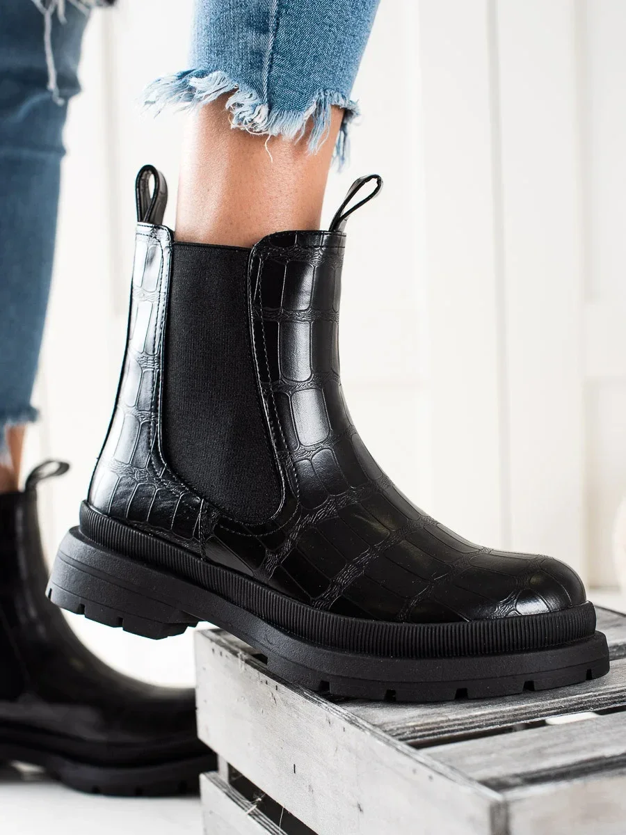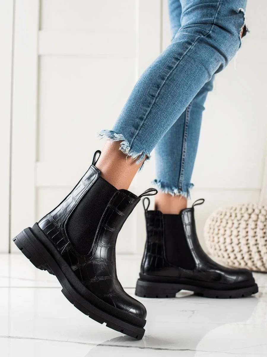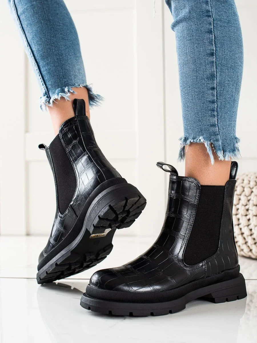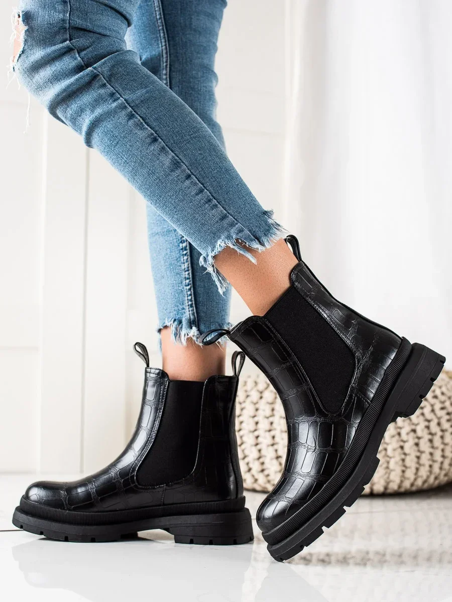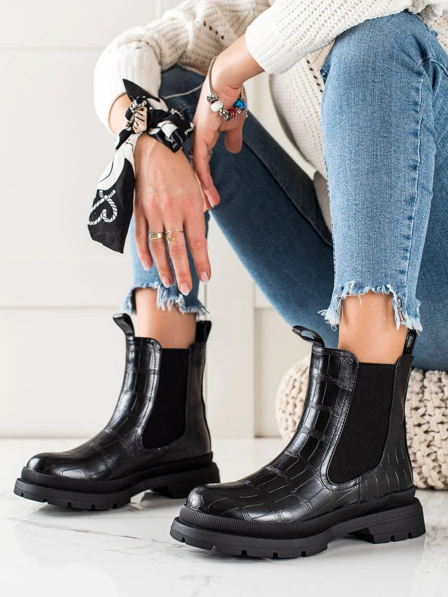 Výborné černé kotníčkové boty dámské na plochém podpatku