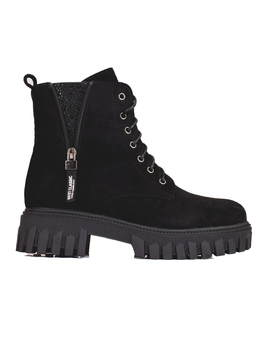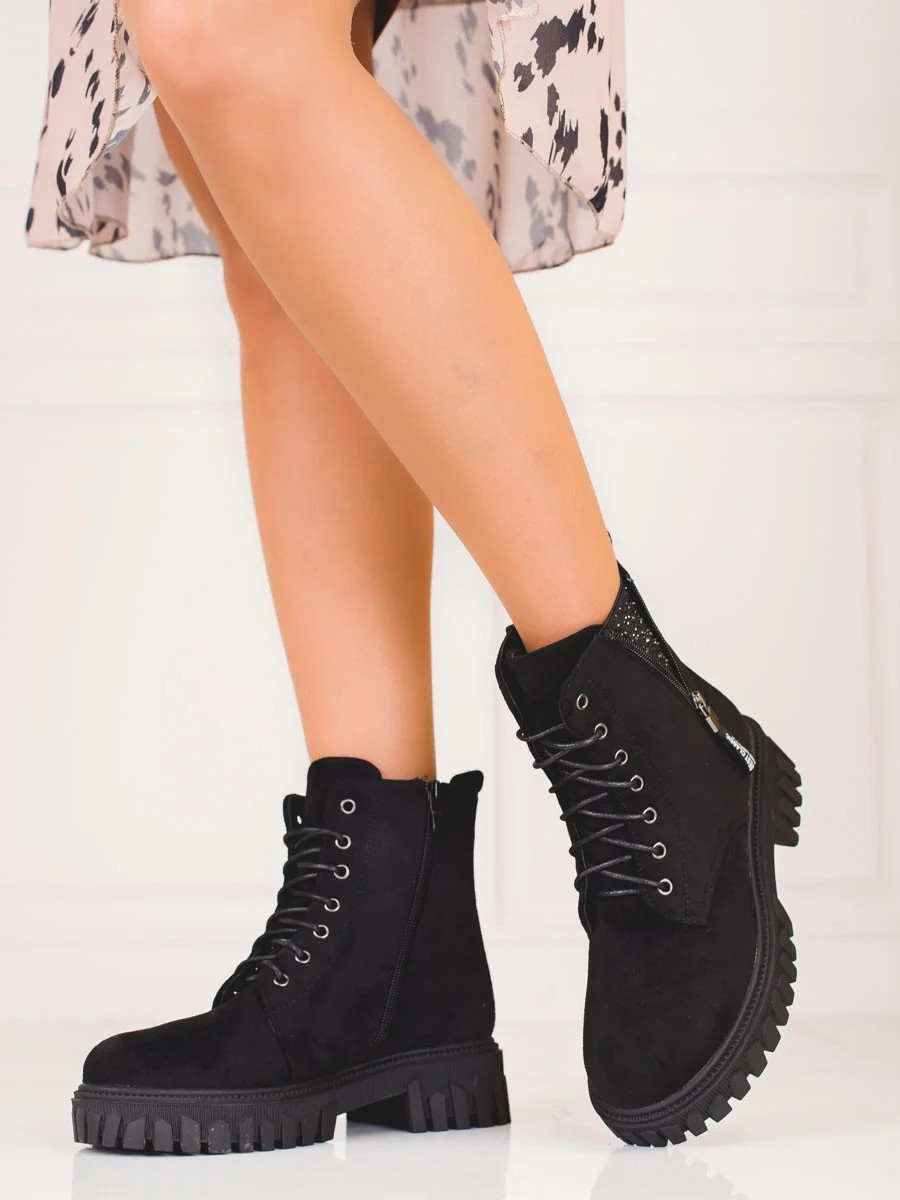 Výborné černé kotníčkové boty dámské na plochém podpatku