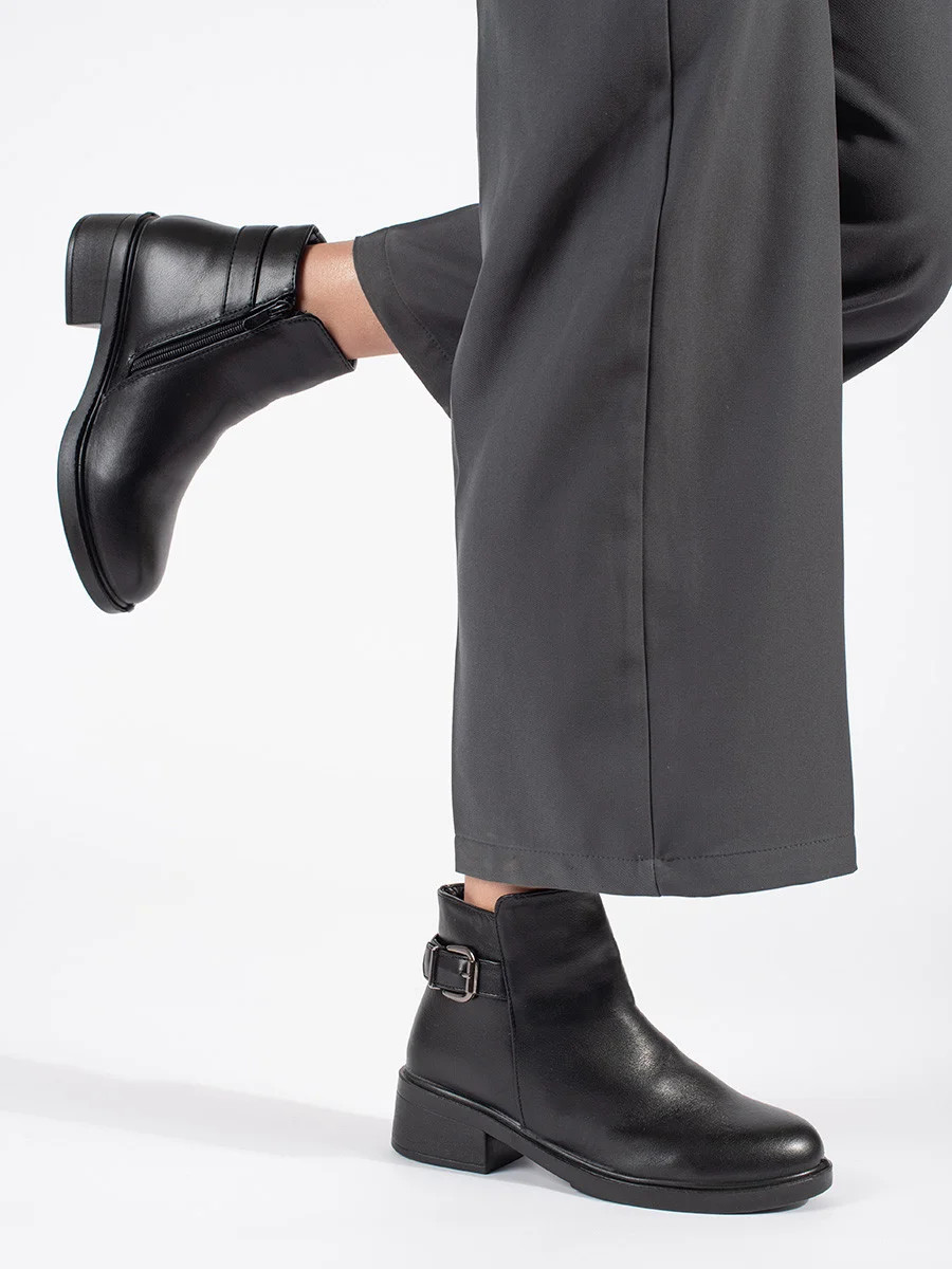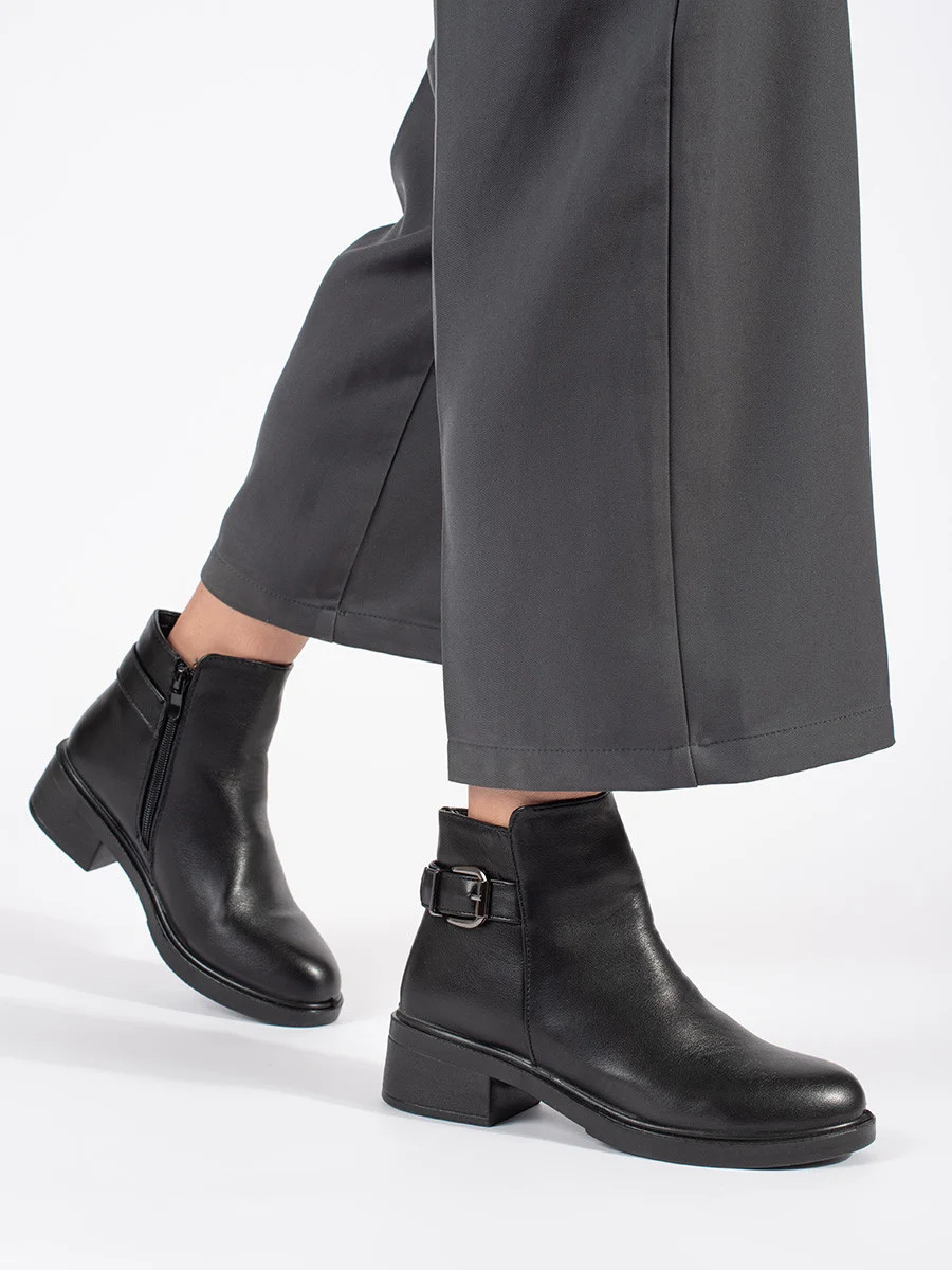 Výborné dámské černé kotníčkové boty na širokém podpatku