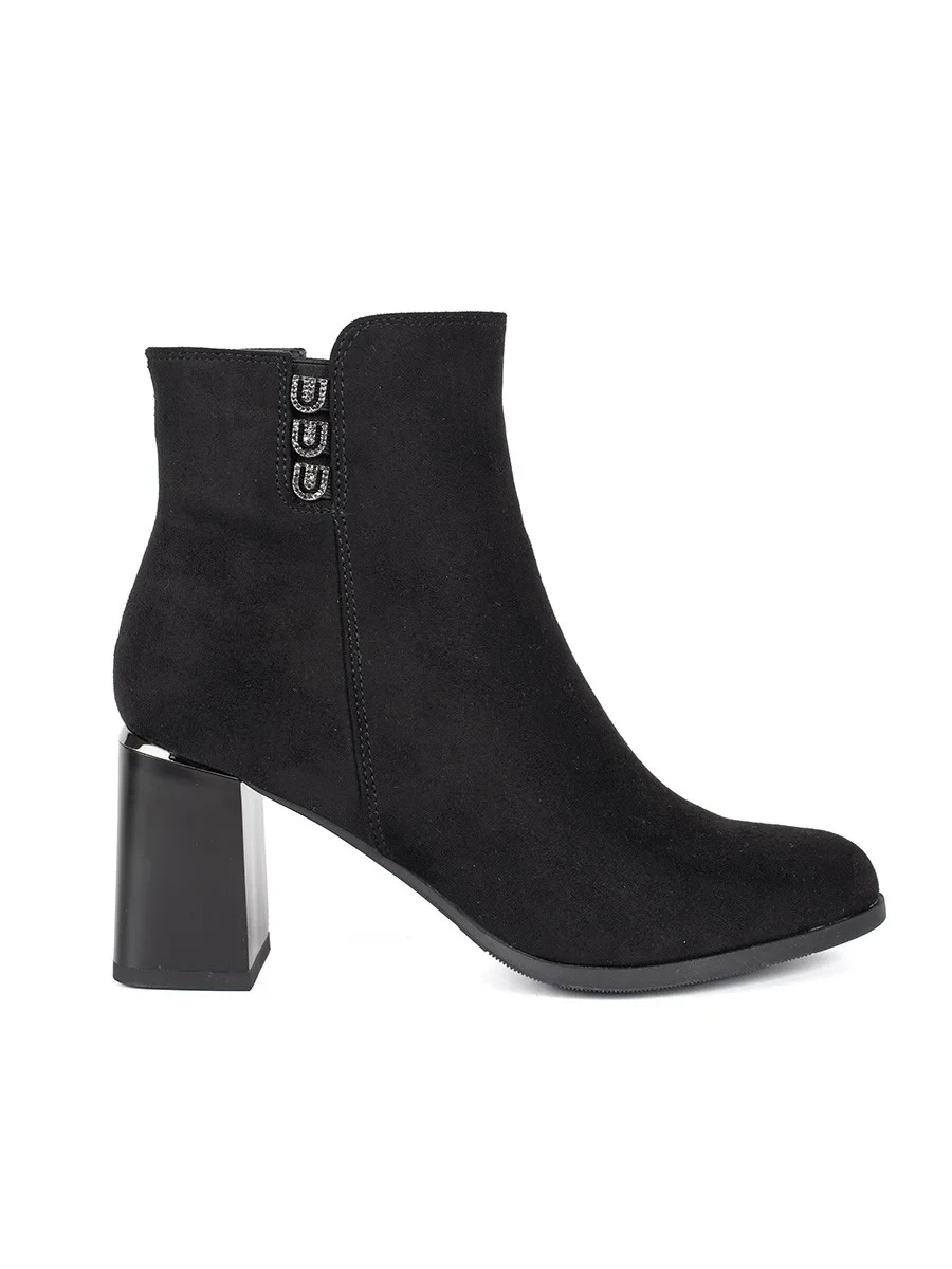 Výborné dámské černé kotníčkové boty na širokém podpatku