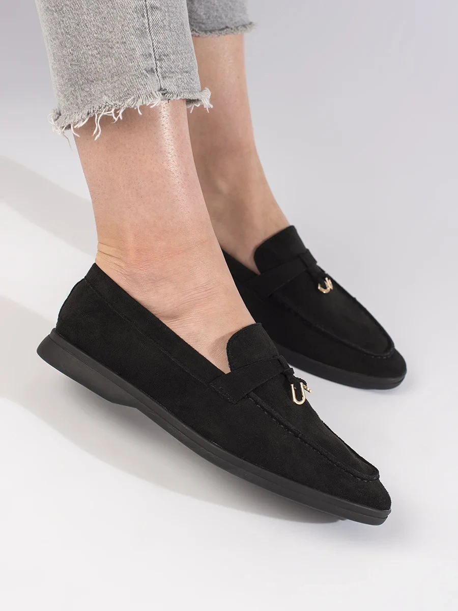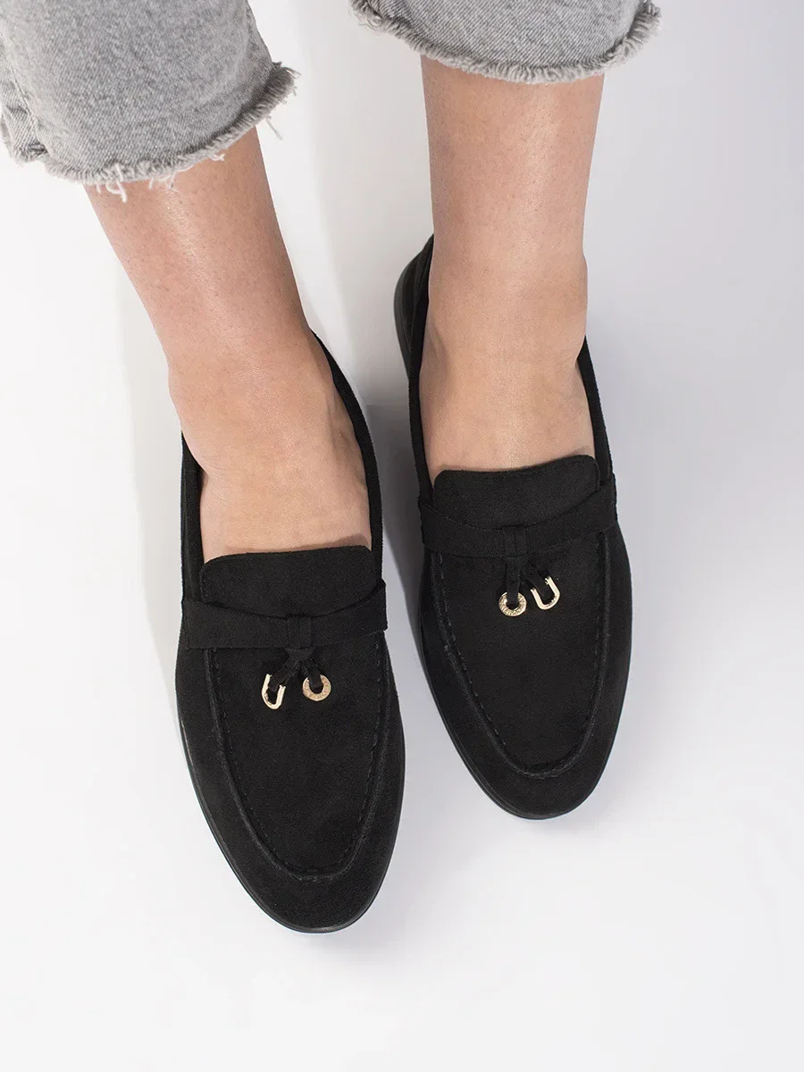 Přidání recenze k Výborné dámské černé mokasíny na plochém podpatku