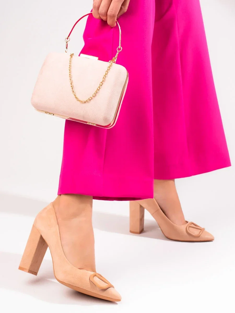 Výborné dámské lodičky hnědé na širokém podpatku
