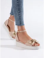 Dámské sandály na platformě a nízkém klínku s ozdobným detailem imitace leopardí kůže hnědé Saqesse