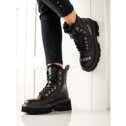 Výborné kotníčkové boty černé dámské na plochém podpatku
