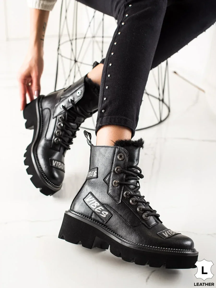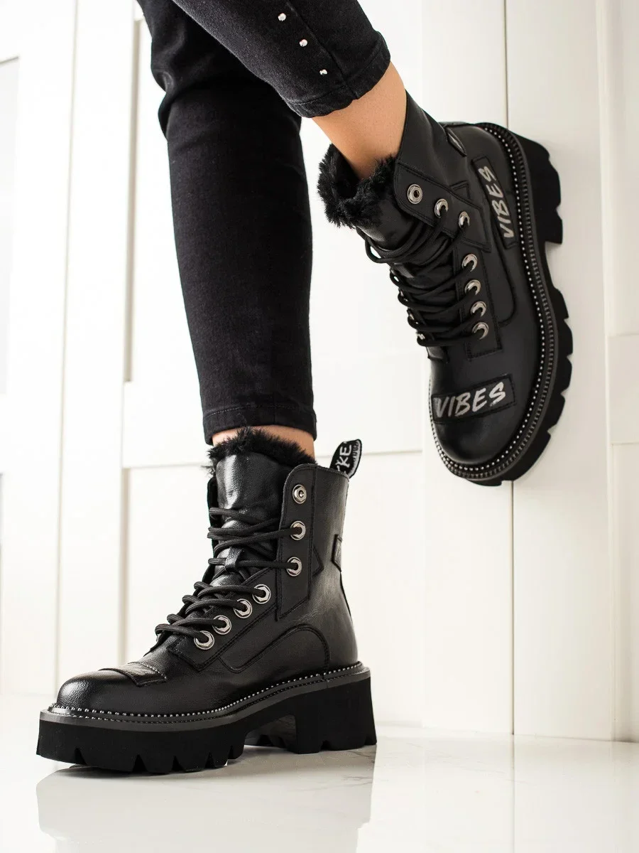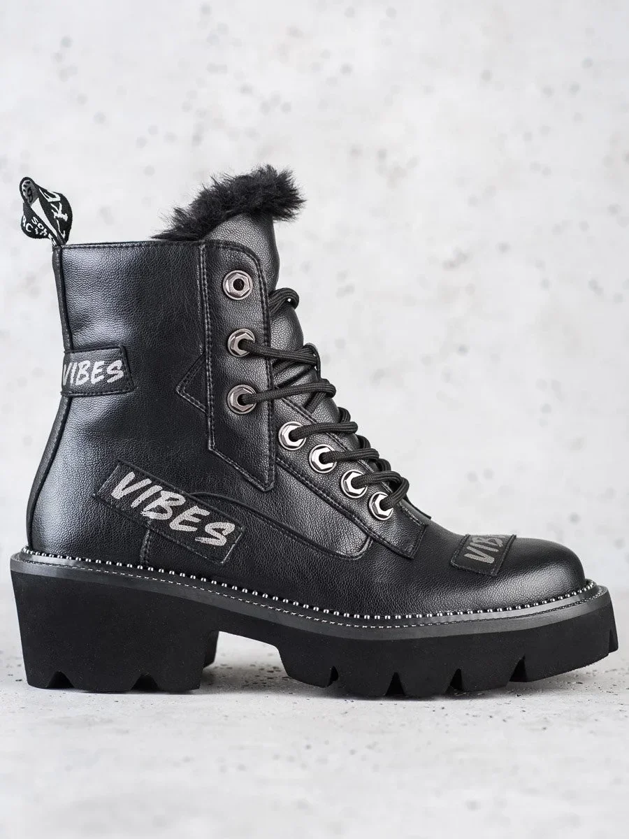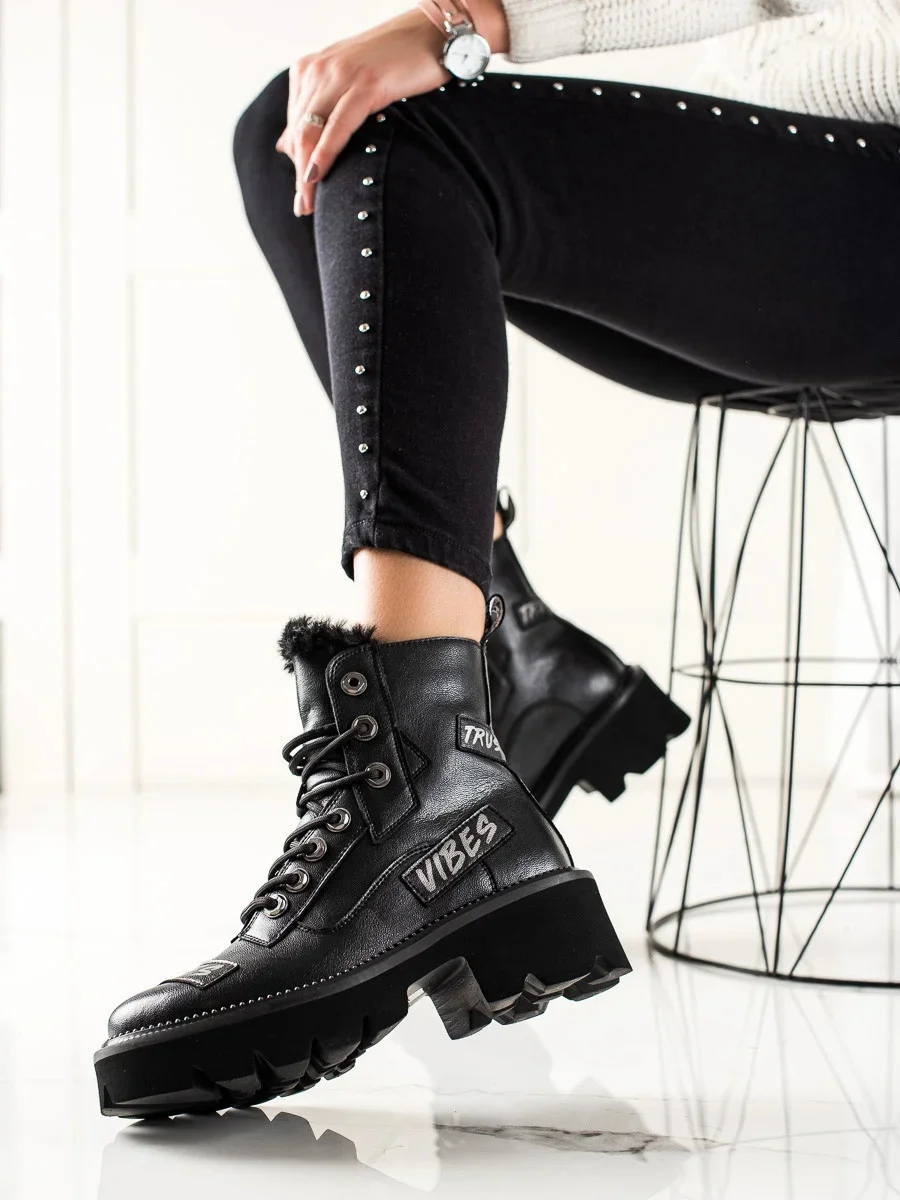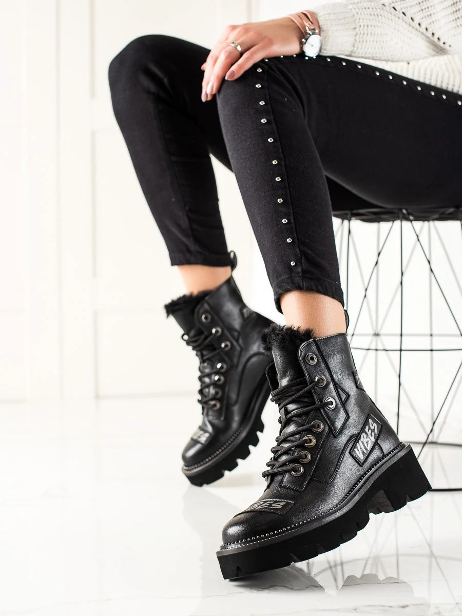 Výborné kotníčkové boty černé dámské na plochém podpatku